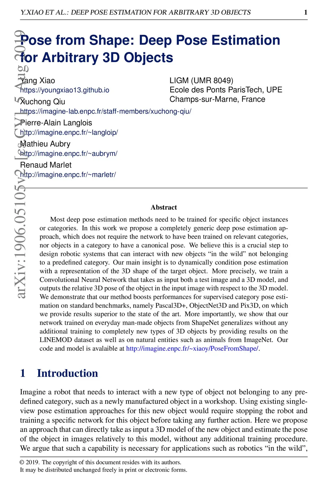 Pose from Shape: Deep Pose Estimation for Arbitrary 3D Objects