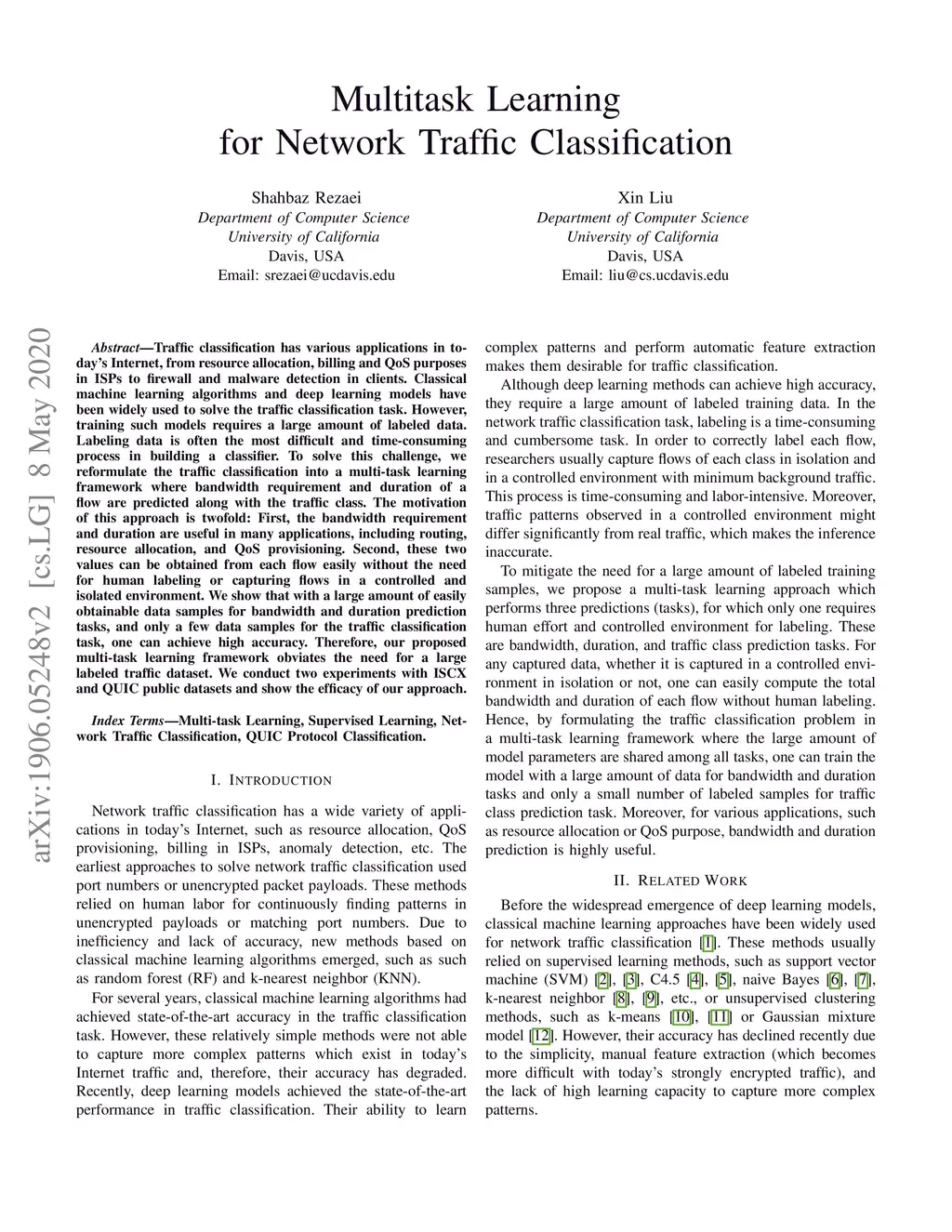 Traffic classification has various applications in today's Internet, from resource allocation, billing and QoS purposes in ISPs to firewall and malware detection in clients. Classical machine learning algorithms and deep learning models have been widely used to solve the traffic classification task. However, training such models requires a large amount of labeled data. Labeling data is often the most difficult and time-consuming process in building a classifier. To solve this challenge, we reformulate the traffic classification into a multi-task learning framework where bandwidth requirement and duration of a flow are predicted along with the traffic class. The motivation of this approach is twofold: First, bandwidth requirement and duration are useful in many applications, including routing, resource allocation, and QoS provisioning. Second, these two values can be obtained from each flow easily without the need for human labeling or capturing flows in a controlled and isolated environment. We show that with a large amount of easily obtainable data samples for bandwidth and duration prediction tasks, and only a few data samples for the traffic classification task, one can achieve high accuracy. We conduct two experiment with ISCX and QUIC public datasets and show the efficacy of our approach.