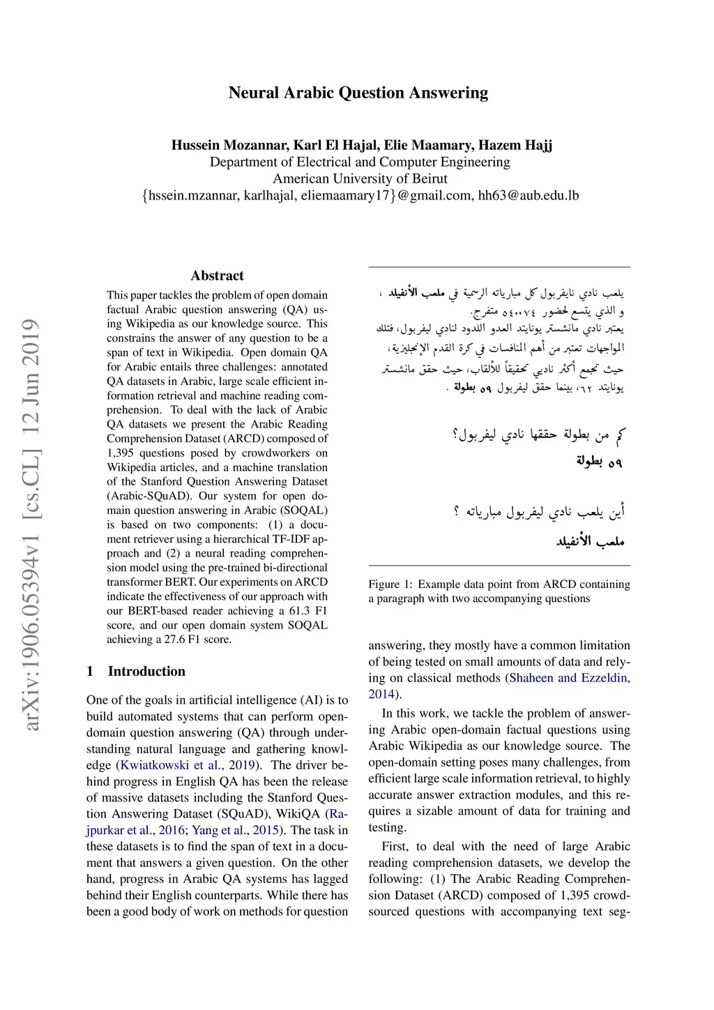 Neural Arabic Question Answering