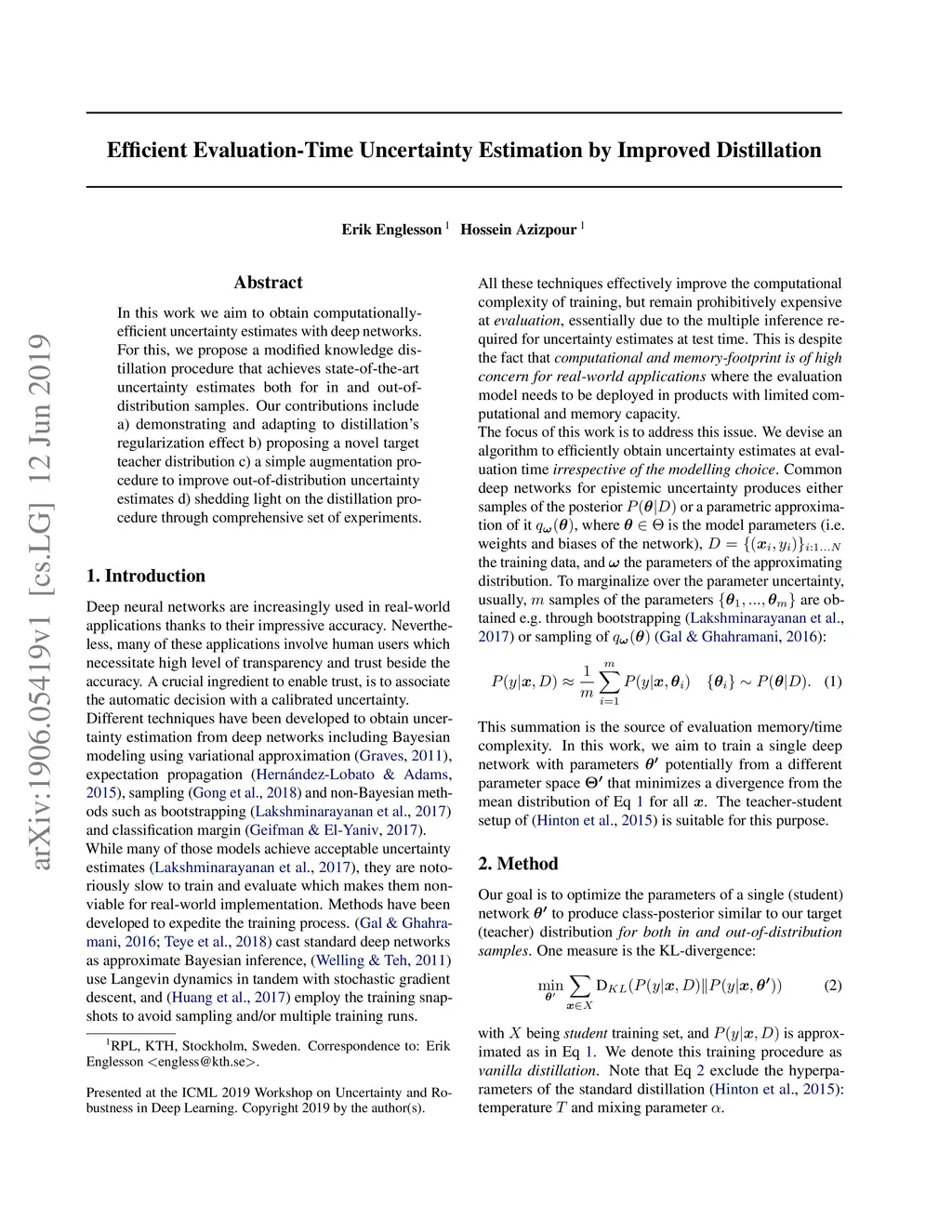 In this work we aim to obtain computationally-efficient uncertainty estimates with deep networks. For this, we propose a modified knowledge distillation procedure that achieves state-of-the-art uncertainty estimates both for in and out-of-distribution samples. Our contributions include a) demonstrating and adapting to distillation's regularization effect b) proposing a novel target teacher distribution c) a simple augmentation procedure to improve out-of-distribution uncertainty estimates d) shedding light on the distillation procedure through comprehensive set of experiments.