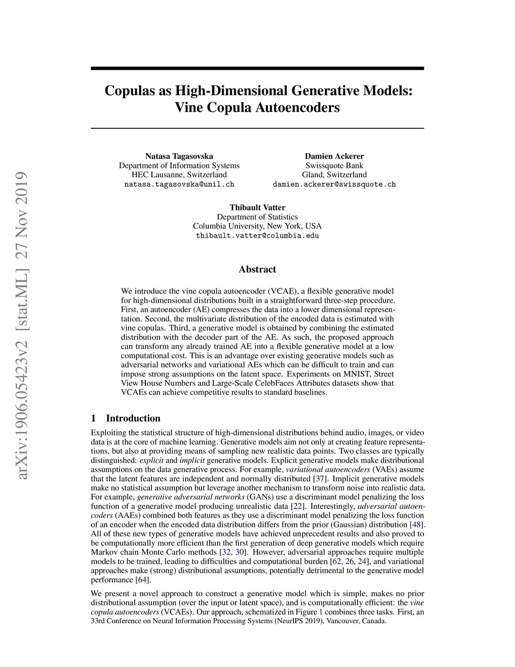 Copulas as High-Dimensional Generative Models: Vine Copula Autoencoders