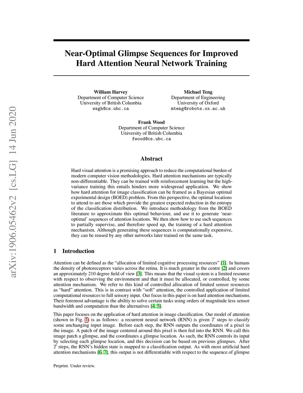 Near-Optimal Glimpse Sequences for Improved Hard Attention Neural