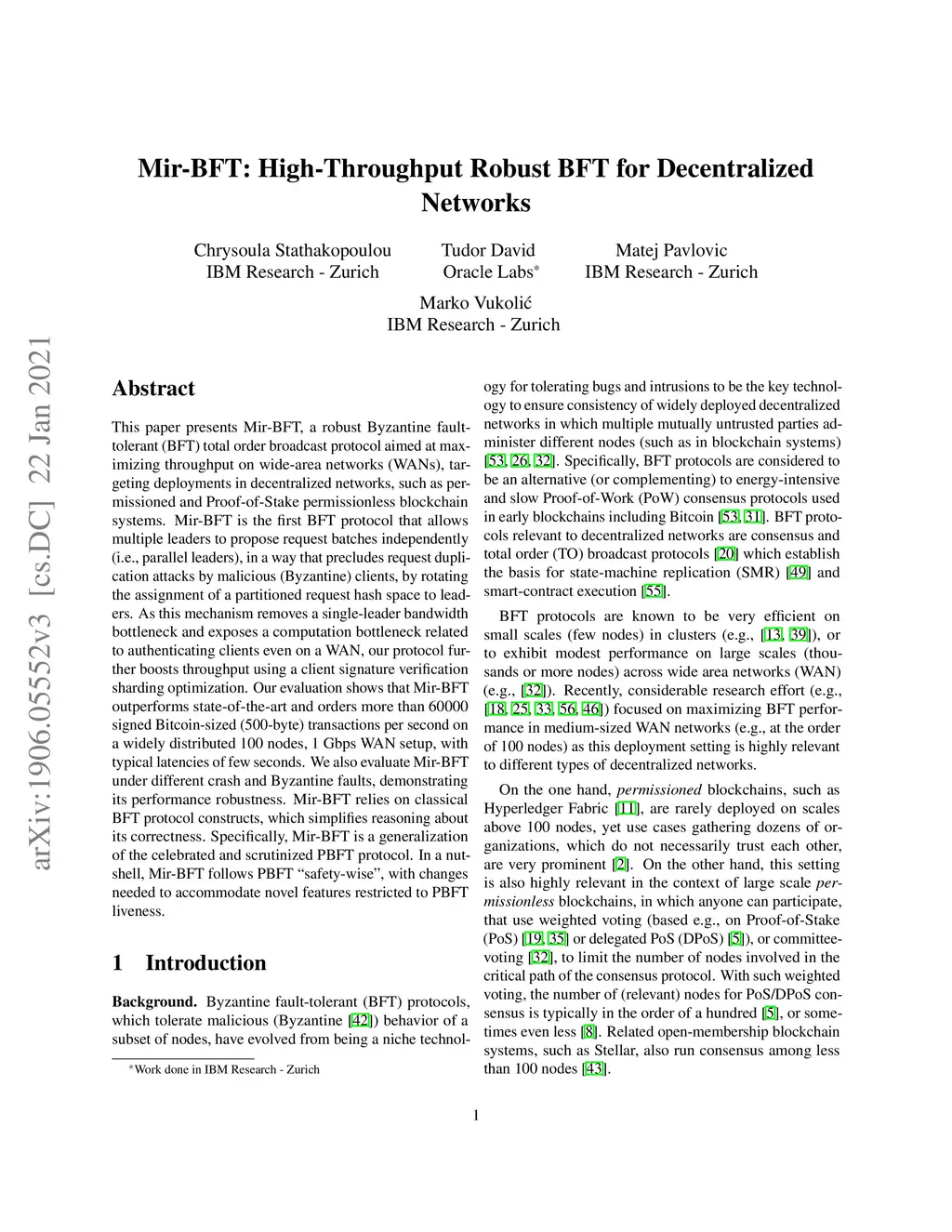 Mir-BFT: High-Throughput Robust BFT for Decentralized Networks