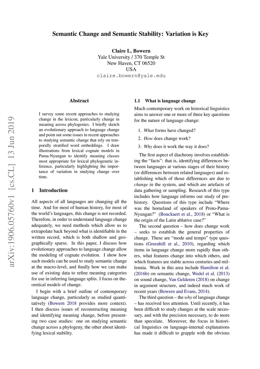 I survey some recent approaches to studying change in the lexicon, particularly change in meaning across phylogenies. I briefly sketch an evolutionary approach to language change and point out some issues in recent approaches to studying semantic change that rely on temporally stratified word embeddings. I draw illustrations from lexical cognate models in Pama-Nyungan to identify meaning classes most appropriate for lexical phylogenetic inference, particularly highlighting the importance of variation in studying change over time.