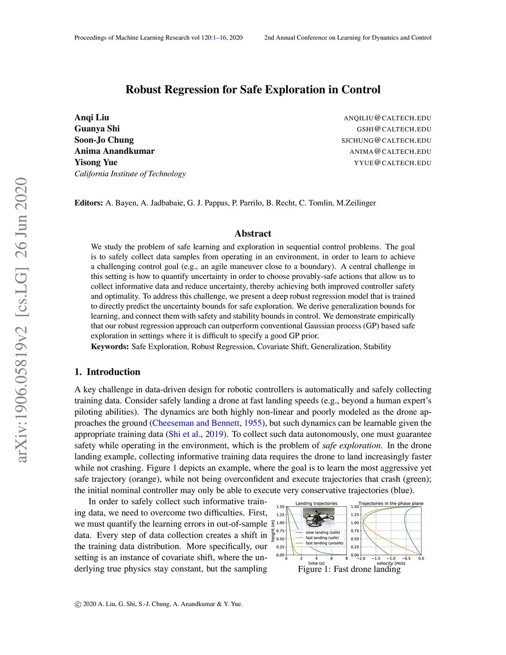 Robust Regression for Safe Exploration in Control