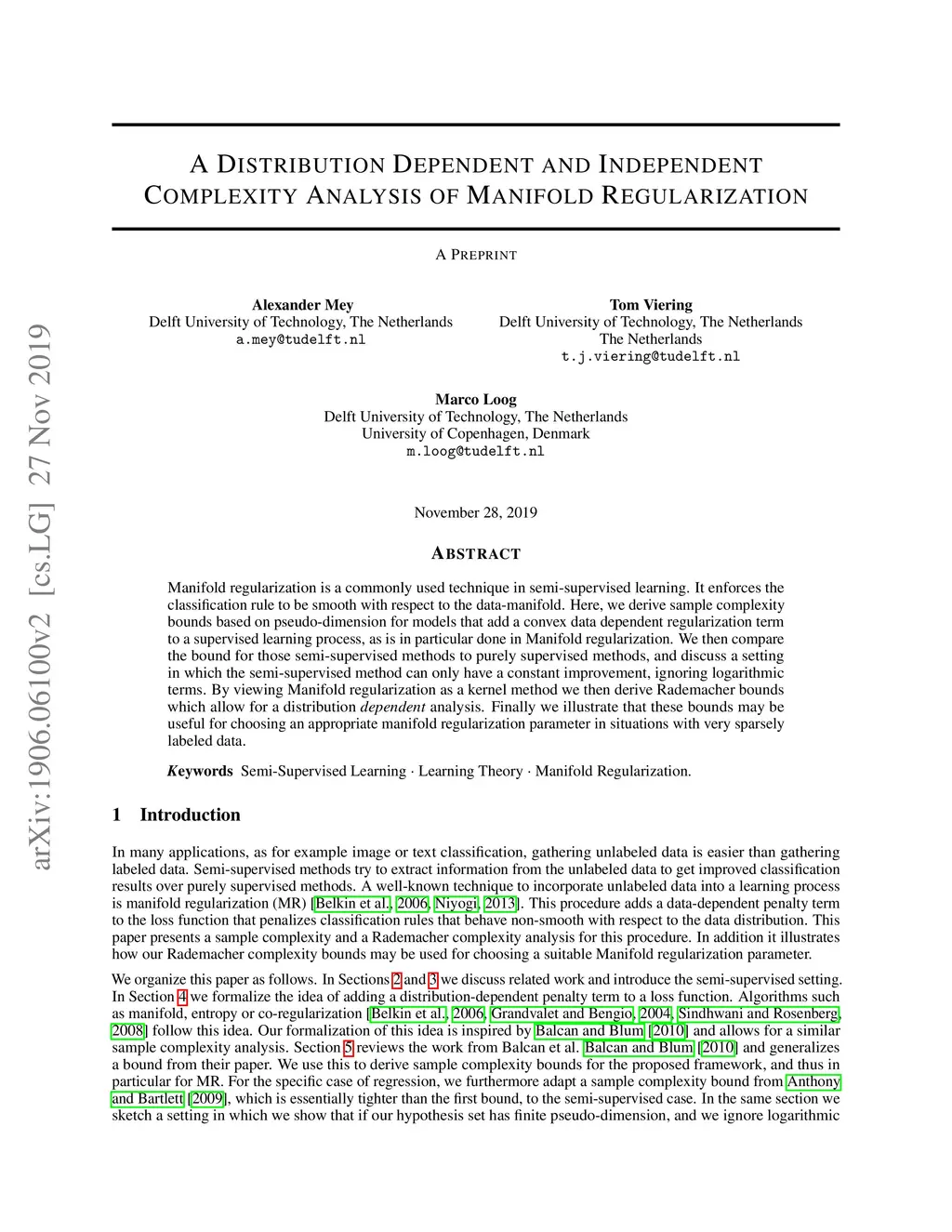 A Distribution Dependent and Independent Complexity Analysis of Manifold