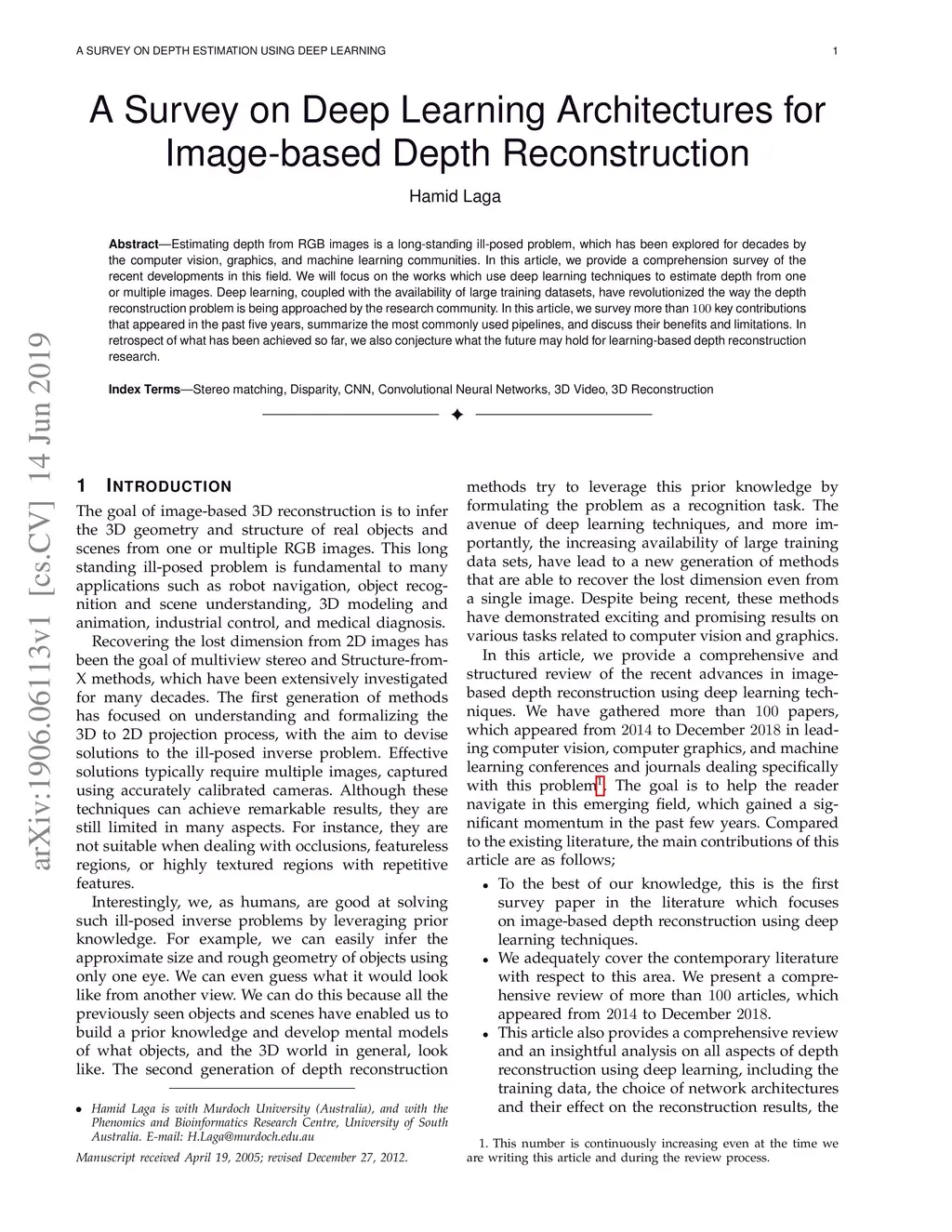 A Survey on Deep Learning Architectures for Image-based Depth