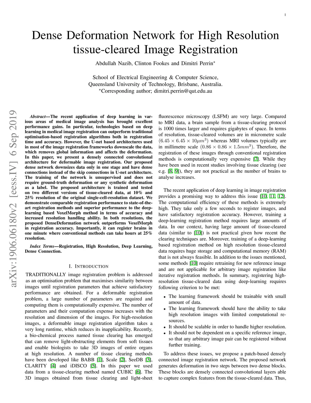 Dense Deformation Network for High Resolution Tissue Cleared Image