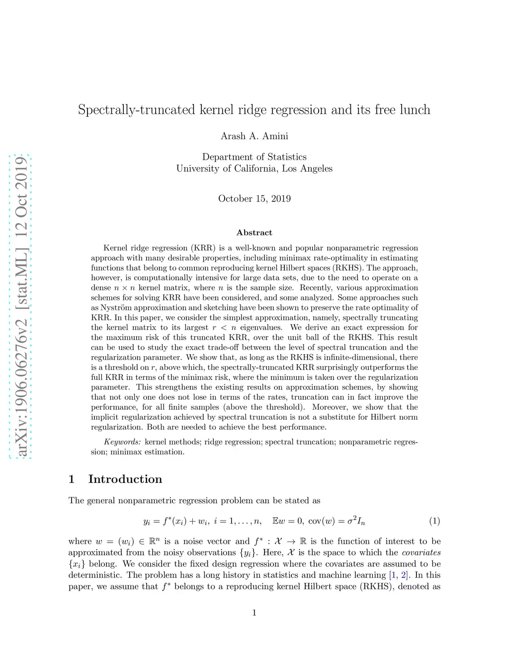 Kernel ridge regression (KRR) is a well-known and popular nonparametric regression approach with many desirable properties, including minimax rate-optimality in estimating functions that belong to common reproducing kernel Hilbert spaces (RKHS). The approach, however, is computationally intensive for large data sets, due to the need to operate on a dense kernel matrix, where is the sample size. Recently, various approximation schemes for solving KRR have been considered, and some analyzed. Some approaches such as Nystr\"{o}m approximation and sketching have been shown to preserve the rate optimality of KRR. In this paper, we consider the simplest approximation, namely, spectrally truncating the kernel matrix to its largest eigenvalues. We derive an exact expression for the maximum risk of this truncated KRR, over the unit ball of the RKHS. This result can be used to study the exact trade-off between the level of spectral truncation and the regularization parameter. We show that, as long as the RKHS is infinite-dimensional, there is a threshold on , above which, the spectrally-truncated KRR surprisingly outperforms the full KRR in terms of the minimax risk, where the minimum is taken over the regularization parameter. This strengthens the existing results on approximation schemes, by showing that not only one does not lose in terms of the rates, truncation can in fact improve the performance, for all finite samples (above the threshold). Moreover, we show that the implicit regularization achieved by spectral truncation is not a substitute for Hilbert norm regularization. Both are needed to achieve the best performance.
