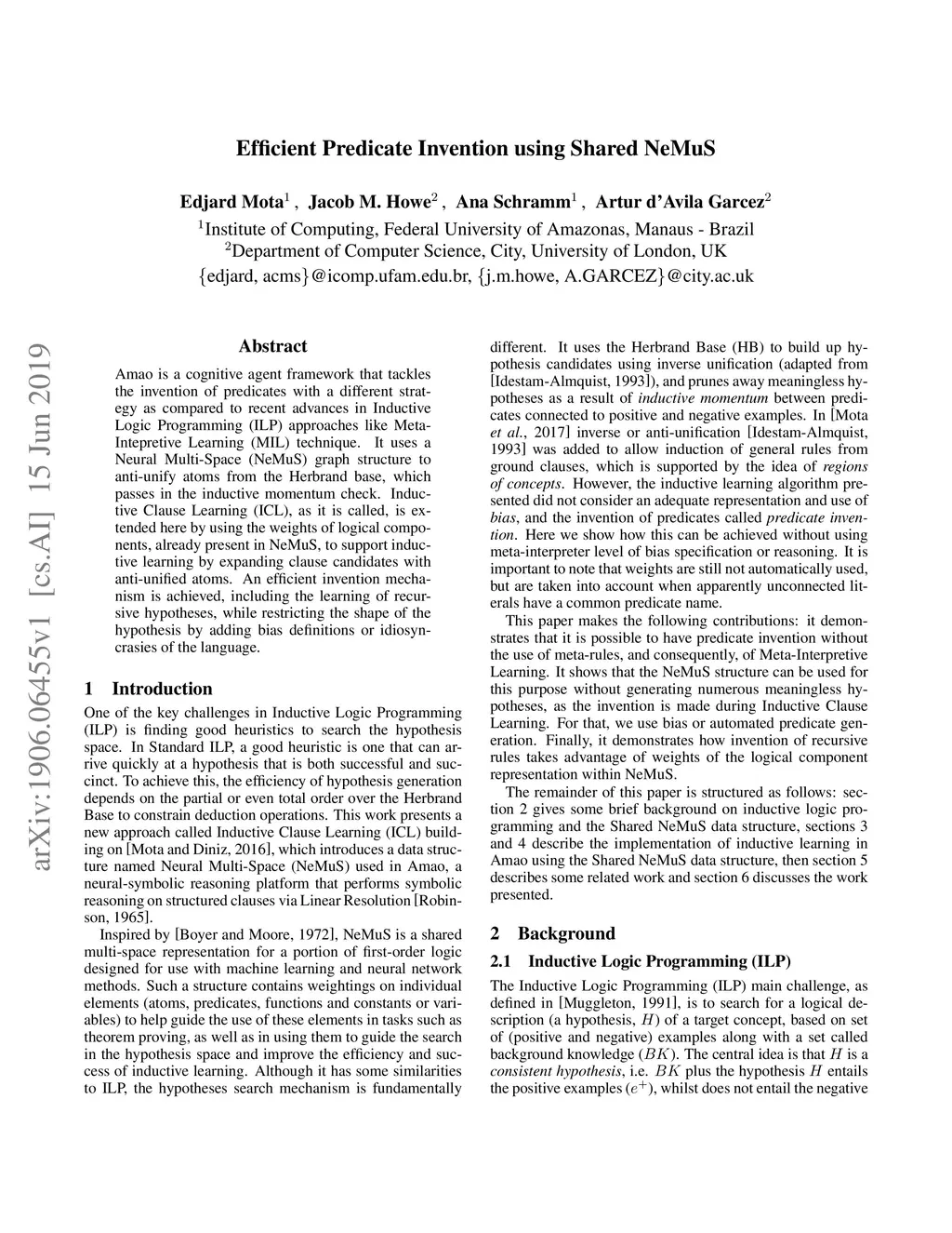 Amao is a cognitive agent framework that tackles the invention of predicates with a different strategy as compared to recent advances in Inductive Logic Programming (ILP) approaches like Meta-Intepretive Learning (MIL) technique. It uses a Neural Multi-Space (NeMuS) graph structure to anti-unify atoms from the Herbrand base, which passes in the inductive momentum check. Inductive Clause Learning (ICL), as it is called, is extended here by using the weights of logical components, already present in NeMuS, to support inductive learning by expanding clause candidates with anti-unified atoms. An efficient invention mechanism is achieved, including the learning of recursive hypotheses, while restricting the shape of the hypothesis by adding bias definitions or idiosyncrasies of the language.