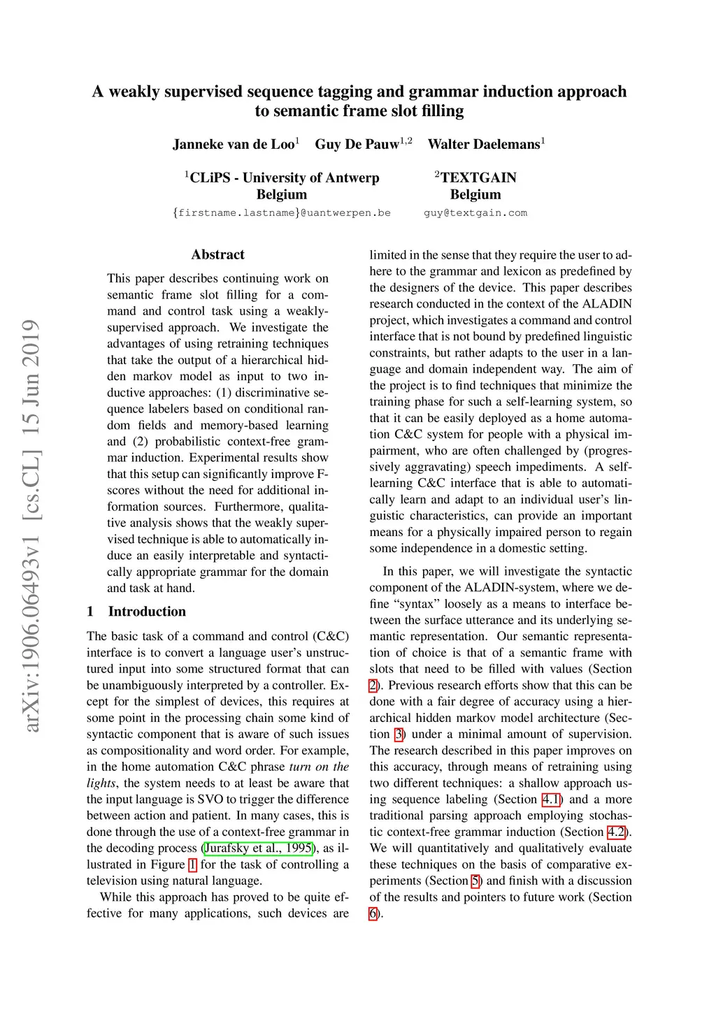 This paper describes continuing work on semantic frame slot filling for a command and control task using a weakly-supervised approach. We investigate the advantages of using retraining techniques that take the output of a hierarchical hidden markov model as input to two inductive approaches: (1) discriminative sequence labelers based on conditional random fields and memory-based learning and (2) probabilistic context-free grammar induction. Experimental results show that this setup can significantly improve F-scores without the need for additional information sources. Furthermore, qualitative analysis shows that the weakly supervised technique is able to automatically induce an easily interpretable and syntactically appropriate grammar for the domain and task at hand.