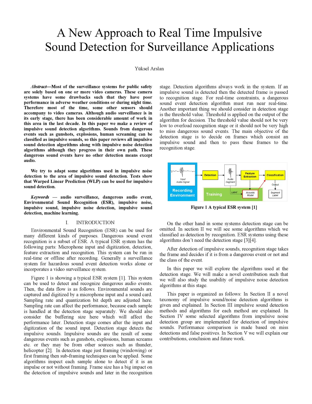 A New Approach to Real Time Impulsive Sound Detection for Surveillance