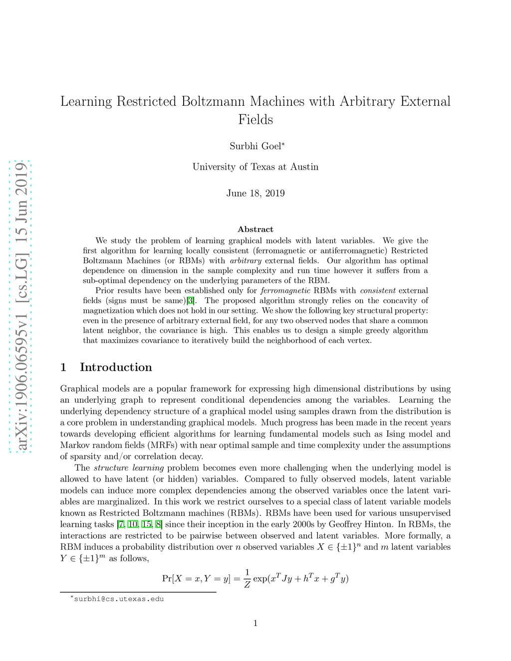 Learning Restricted Boltzmann Machines with Arbitrary External Fields