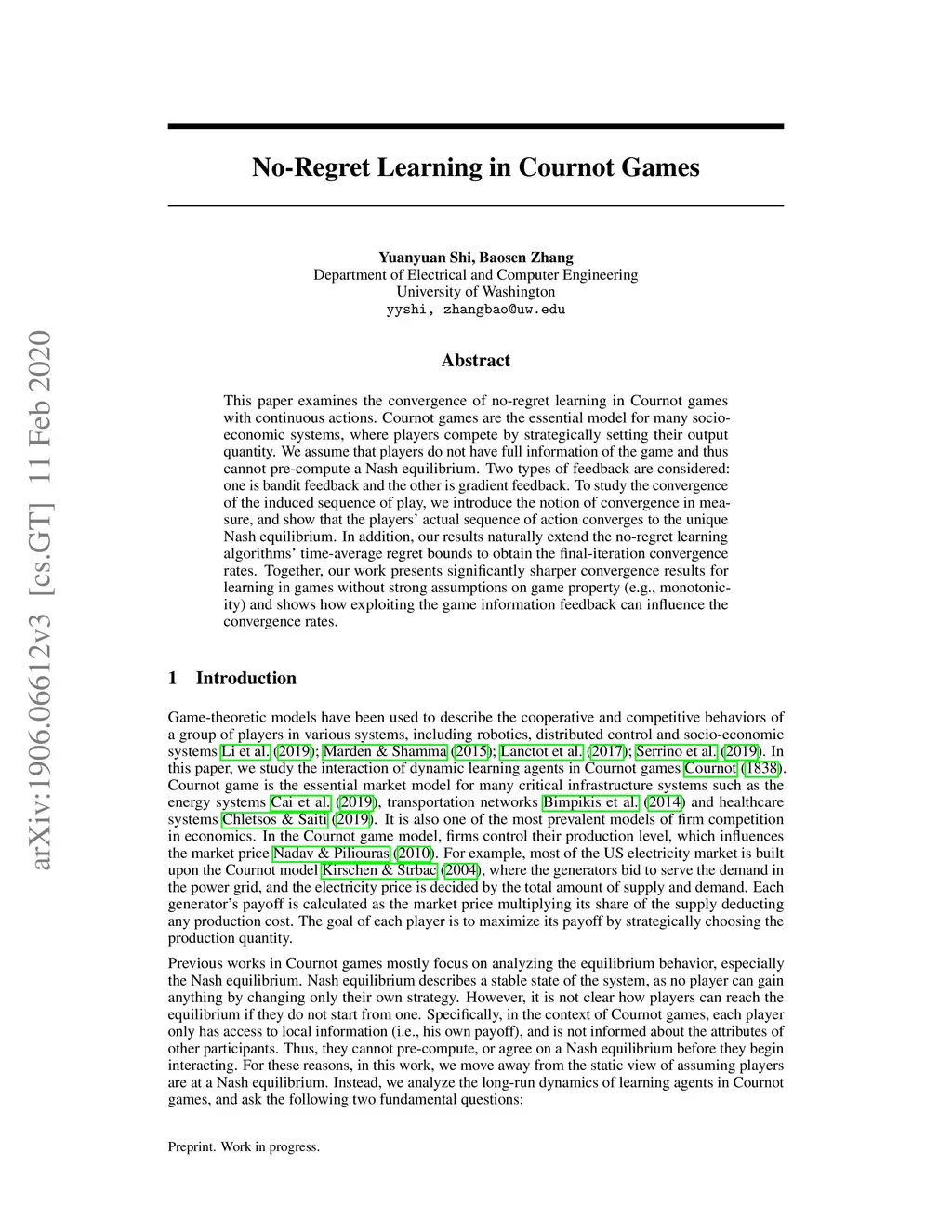 No-regret Learning in Cournot Games