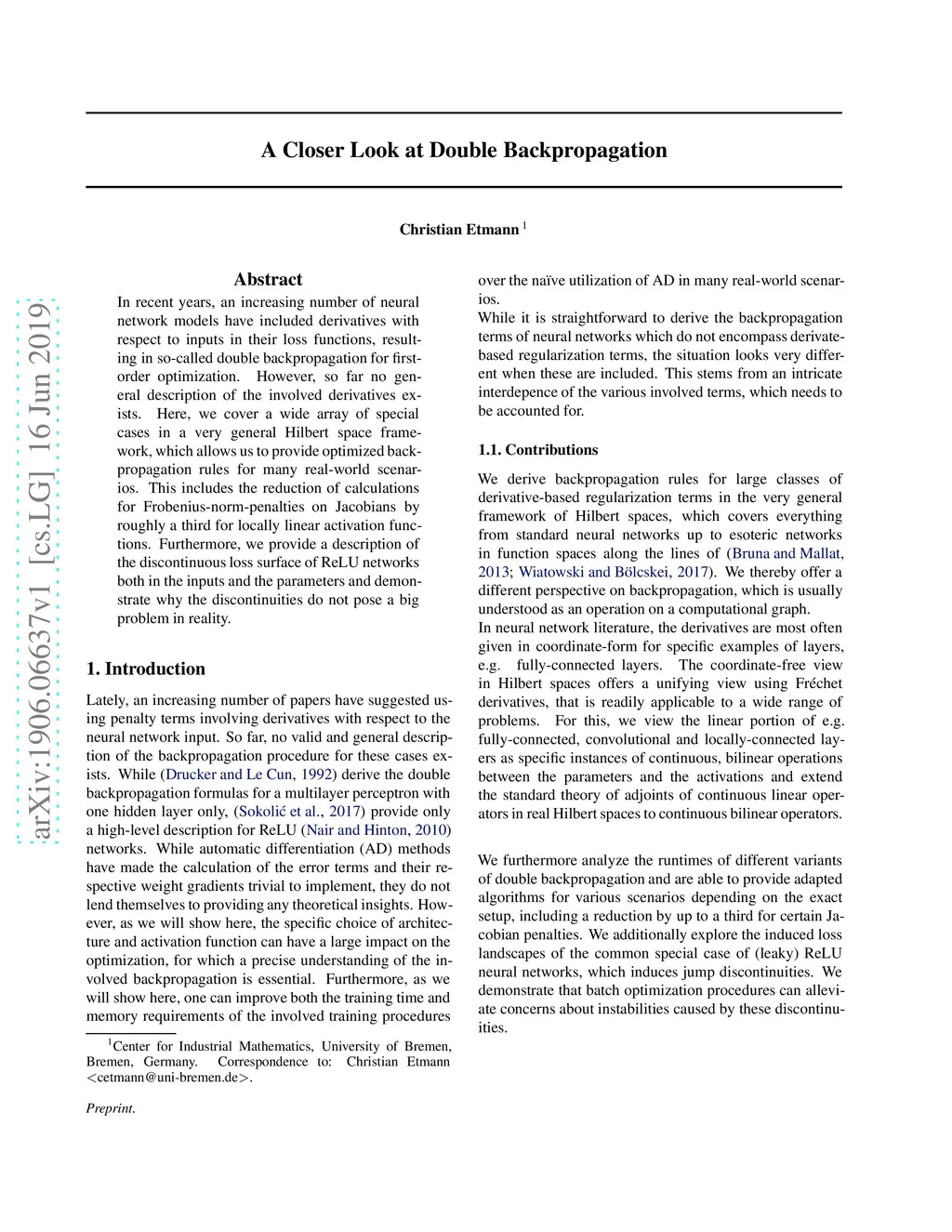 In recent years, an increasing number of neural network models have included derivatives with respect to inputs in their loss functions, resulting in so-called double backpropagation for first-order optimization. However, so far no general description of the involved derivatives exists. Here, we cover a wide array of special cases in a very general Hilbert space framework, which allows us to provide optimized backpropagation rules for many real-world scenarios. This includes the reduction of calculations for Frobenius-norm-penalties on Jacobians by roughly a third for locally linear activation functions. Furthermore, we provide a description of the discontinuous loss surface of ReLU networks both in the inputs and the parameters and demonstrate why the discontinuities do not pose a big problem in reality.