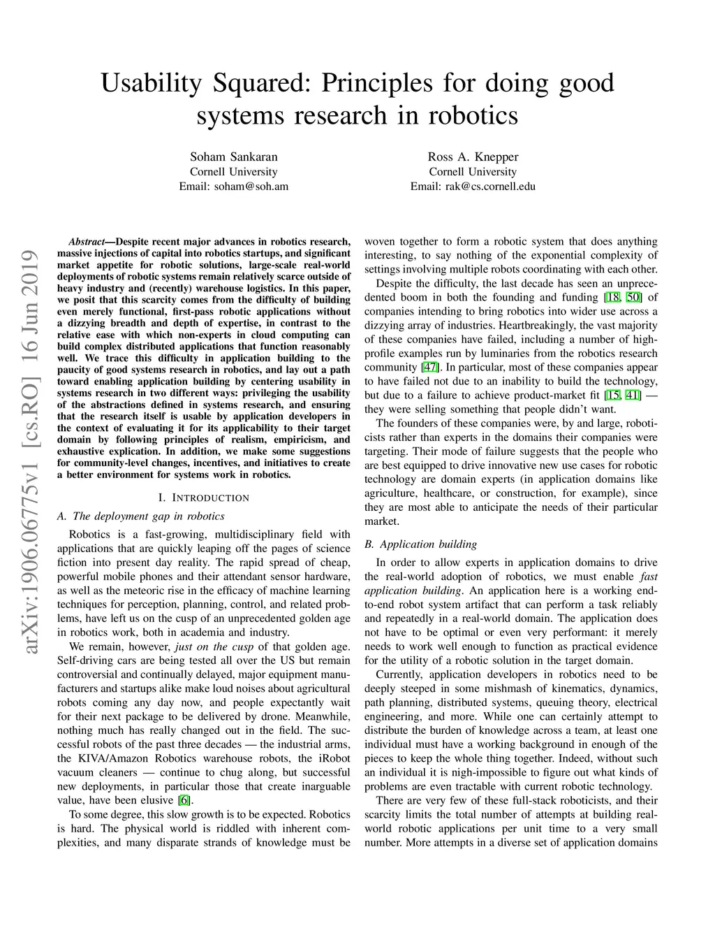 Despite recent major advances in robotics research, massive injections of capital into robotics startups, and significant market appetite for robotic solutions, large-scale real-world deployments of robotic systems remain relatively scarce outside of heavy industry and (recently) warehouse logistics. In this paper, we posit that this scarcity comes from the difficulty of building even merely functional, first-pass robotic applications without a dizzying breadth and depth of expertise, in contrast to the relative ease with which non-experts in cloud computing can build complex distributed applications that function reasonably well. We trace this difficulty in application building to the paucity of good systems research in robotics, and lay out a path toward enabling application building by centering usability in systems research in two different ways: privileging the usability of the abstractions defined in systems research, and ensuring that the research itself is usable by application developers in the context of evaluating it for its applicability to their target domain by following principles of realism, empiricism, and exhaustive explication. In addition, we make some suggestions for community-level changes, incentives, and initiatives to create a better environment for systems work in robotics.