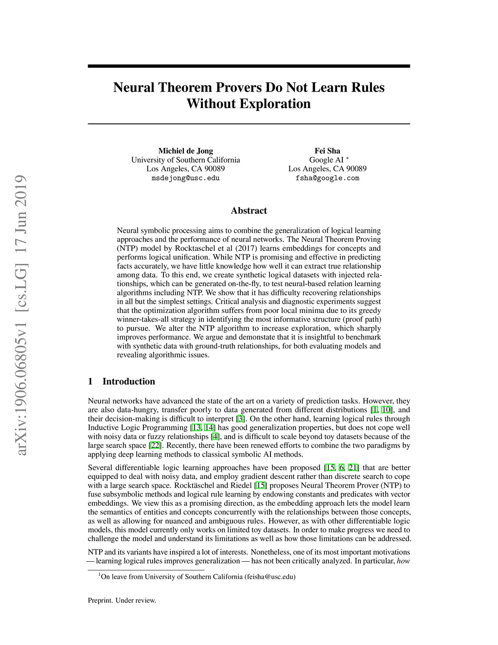 Neural symbolic processing aims to combine the generalization of logical learning approaches and the performance of neural networks. The Neural Theorem Proving (NTP) model by Rocktaschel et al (2017) learns embeddings for concepts and performs logical unification. While NTP is promising and effective in predicting facts accurately, we have little knowledge how well it can extract true relationship among data. To this end, we create synthetic logical datasets with injected relationships, which can be generated on-the-fly, to test neural-based relation learning algorithms including NTP. We show that it has difficulty recovering relationships in all but the simplest settings. Critical analysis and diagnostic experiments suggest that the optimization algorithm suffers from poor local minima due to its greedy winner-takes-all strategy in identifying the most informative structure (proof path) to pursue. We alter the NTP algorithm to increase exploration, which sharply improves performance. We argue and demonstate that it is insightful to benchmark with synthetic data with ground-truth relationships, for both evaluating models and revealing algorithmic issues.