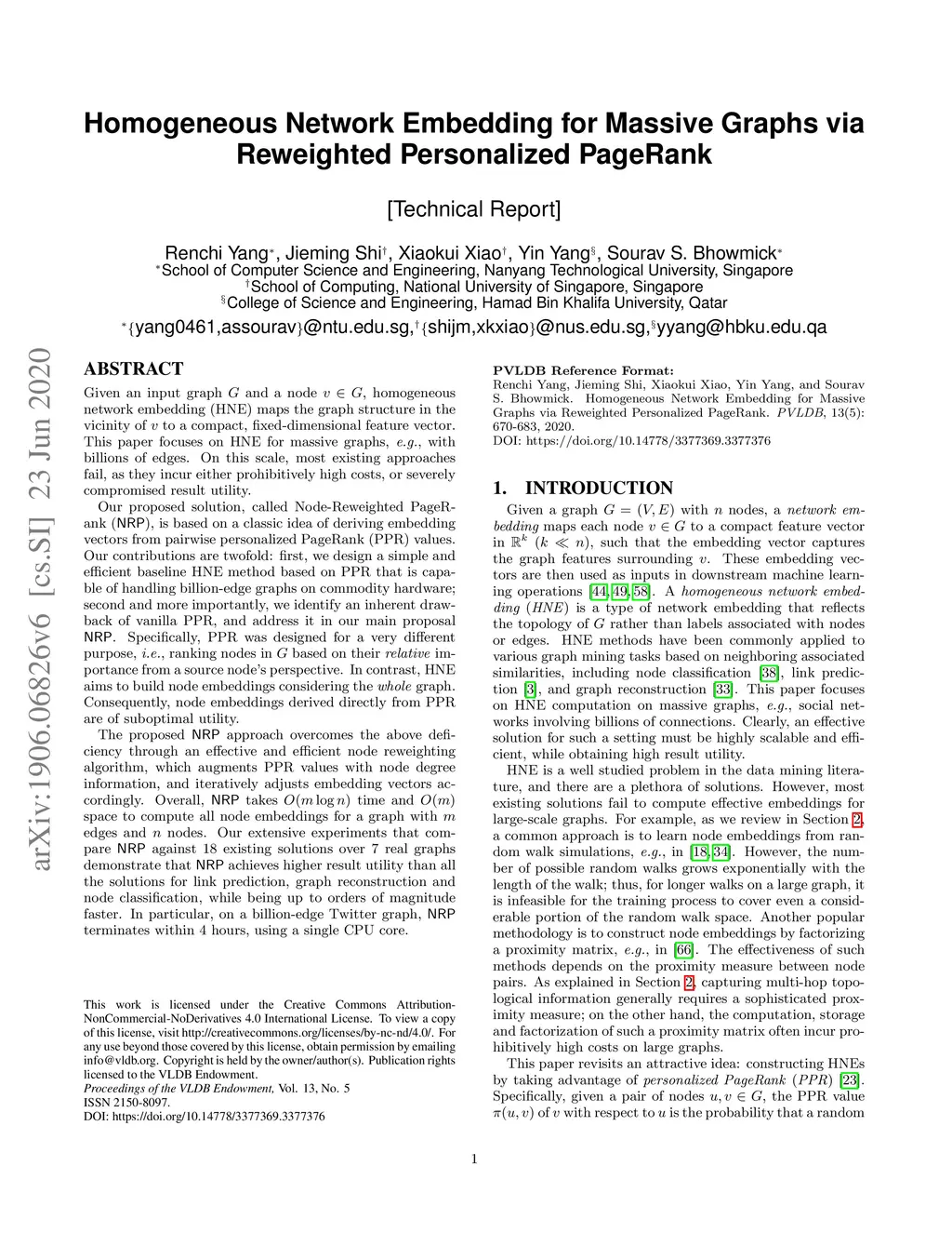 Homogeneous Network Embedding for Massive Graphs via Reweighted