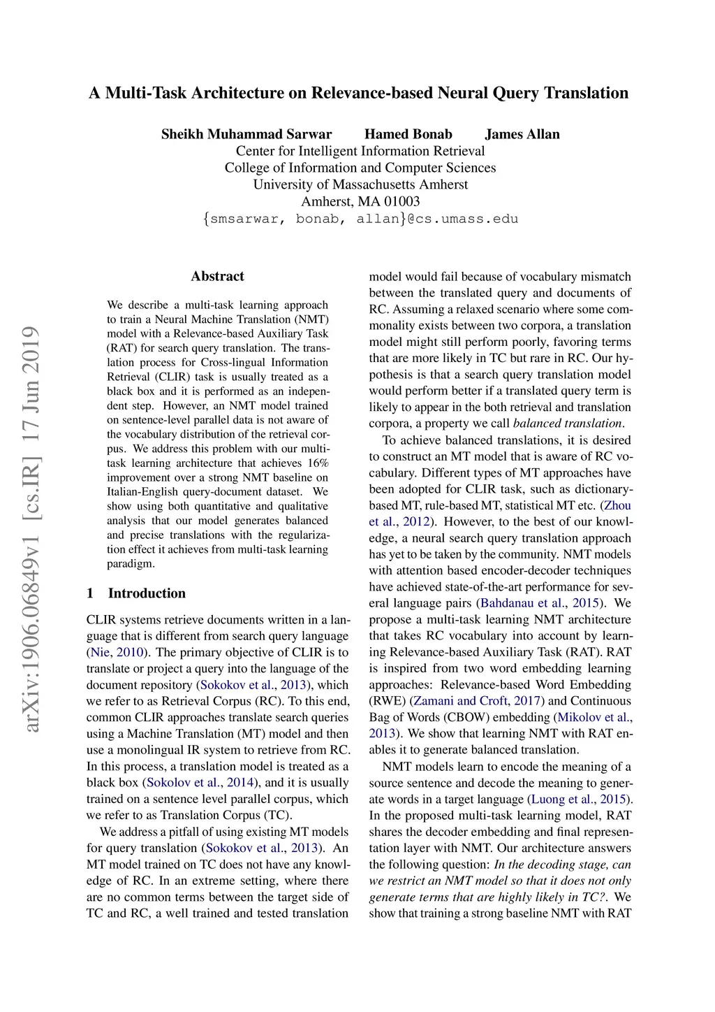 A Multi-Task Architecture on Relevance-based Neural Query Translation