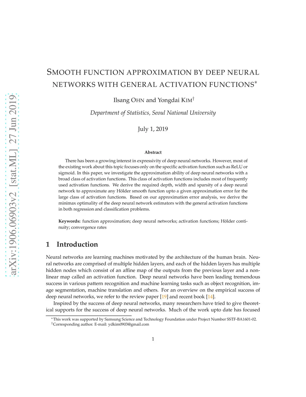 There has been a growing interest in expressivity of deep neural networks. However, most of the existing work about this topic focuses only on the specific activation function such as ReLU or sigmoid. In this paper, we investigate the approximation ability of deep neural networks with a broad class of activation functions. This class of activation functions includes most of frequently used activation functions. We derive the required depth, width and sparsity of a deep neural network to approximate any H\"older smooth function upto a given approximation error for the large class of activation functions. Based on our approximation error analysis, we derive the minimax optimality of the deep neural network estimators with the general activation functions in both regression and classification problems.