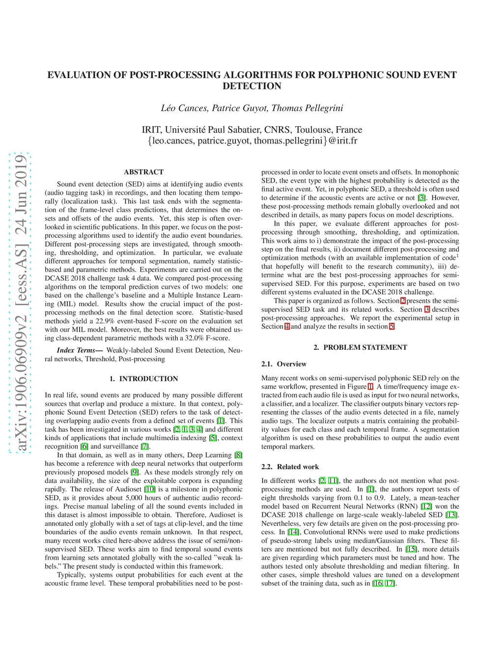 Sound event detection (SED) aims at identifying audio events (audio tagging task) in recordings and then locating them temporally (localization task). This last task ends with the segmentation of the frame-level class predictions, that determines the onsets and offsets of the audio events. Yet, this step is often overlooked in scientific publications. In this paper, we focus on the post-processing algorithms used to identify the audio event boundaries. Different post-processing steps are investigated, through smoothing, thresholding, and optimization. In particular, we evaluate different approaches for temporal segmentation, namely statistic-based and parametric methods. Experiments are carried out on the DCASE 2018 challenge task 4 data. We compared post-processing algorithms on the temporal prediction curves of two models: one based on the challenge's baseline and a Multiple Instance Learning (MIL) model. Results show the crucial impact of the post-processing methods on the final detection score. Statistic-based methods yield a 22.9% event-based F-score on the evaluation set with our MIL model. Moreover, the best results were obtained using class-dependent parametric methods with 32.0% F-score.