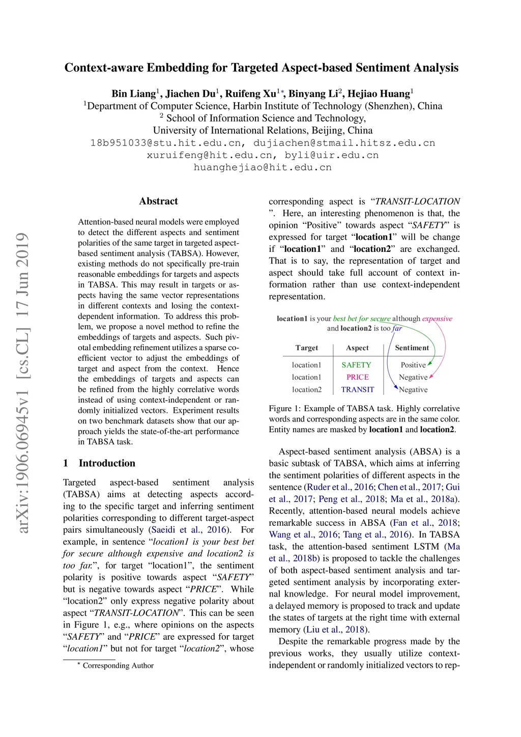 Context-aware Embedding for Targeted Aspect-based Sentiment Analysis