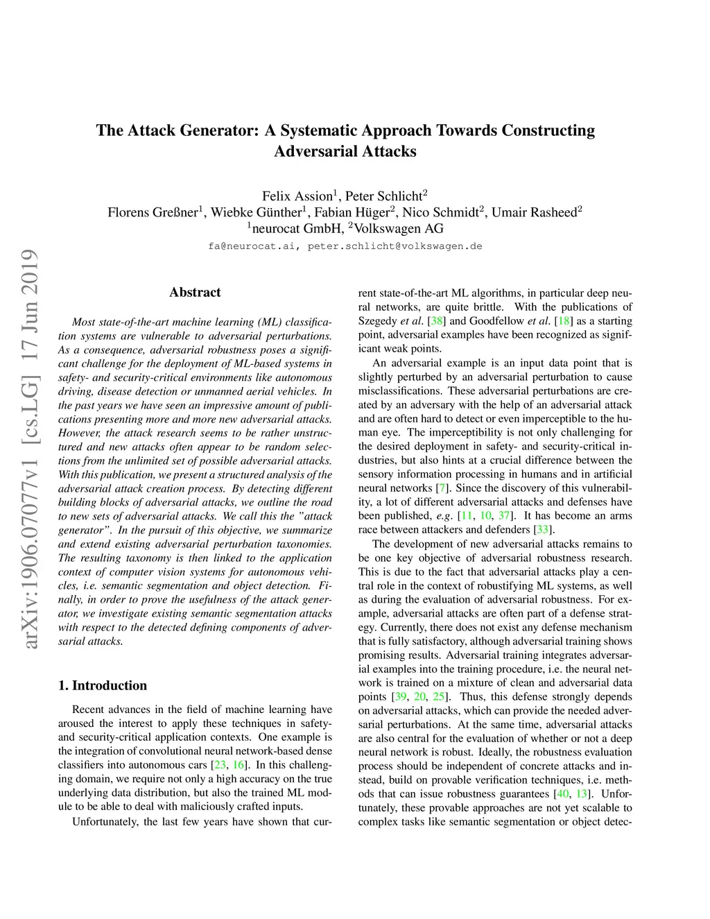 Most state-of-the-art machine learning (ML) classification systems are vulnerable to adversarial perturbations. As a consequence, adversarial robustness poses a significant challenge for the deployment of ML-based systems in safety- and security-critical environments like autonomous driving, disease detection or unmanned aerial vehicles. In the past years we have seen an impressive amount of publications presenting more and more new adversarial attacks. However, the attack research seems to be rather unstructured and new attacks often appear to be random selections from the unlimited set of possible adversarial attacks. With this publication, we present a structured analysis of the adversarial attack creation process. By detecting different building blocks of adversarial attacks, we outline the road to new sets of adversarial attacks. We call this the "attack generator". In the pursuit of this objective, we summarize and extend existing adversarial perturbation taxonomies. The resulting taxonomy is then linked to the application context of computer vision systems for autonomous vehicles, i.e. semantic segmentation and object detection. Finally, in order to prove the usefulness of the attack generator, we investigate existing semantic segmentation attacks with respect to the detected defining components of adversarial attacks.