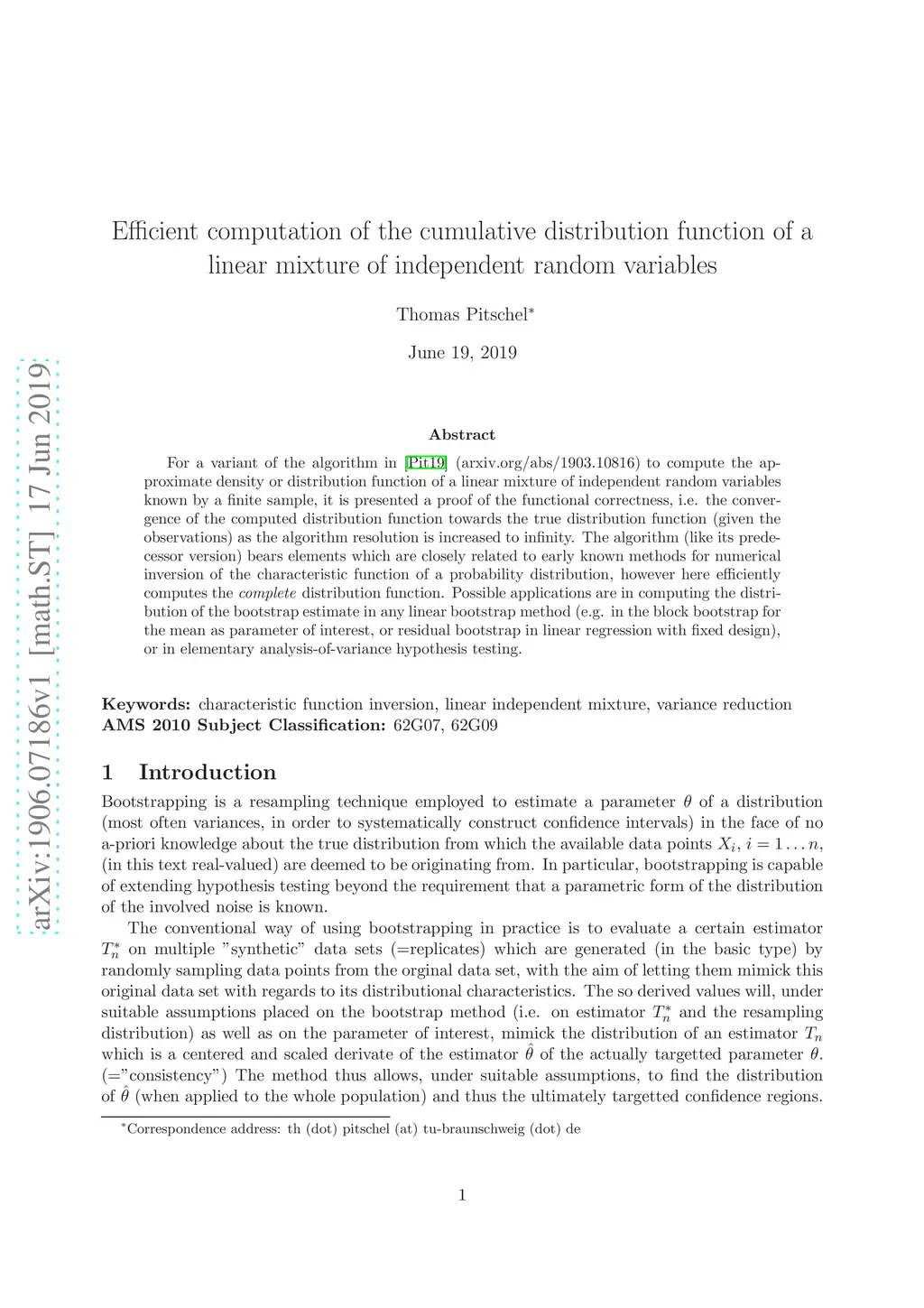 For a variant of the algorithm in [Pit19] (arXiv:1903.10816) to compute the approximate density or distribution function of a linear mixture of independent random variables known by a finite sample, it is presented a proof of the functional correctness, i.e. the convergence of the computed distribution function towards the true distribution function (given the observations) as the algorithm resolution is increased to infinity. The algorithm (like its predecessor version) bears elements which are closely related to early known methods for numerical inversion of the characteristic function of a probability distribution, however here efficiently computes the complete distribution function. Possible applications are in computing the distribution of the bootstrap estimate in any linear bootstrap method (e.g. in the block bootstrap for the mean as parameter of interest, or residual bootstrap in linear regression with fixed design), or in elementary analysis-of-variance hypothesis testing.