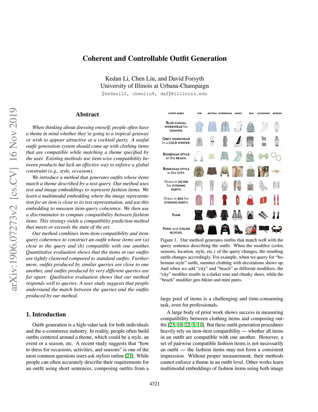 When thinking about dressing oneself, people often have a theme in mind whether they're going to a tropical getaway or wish to appear attractive at a cocktail party. A useful outfit generation system should come up with clothing items that are compatible while matching a theme specified by the user. Existing methods use item-wise compatibility between products but lack an effective way to enforce a global constraint (e.g., style, occasion). We introduce a method that generates outfits whose items match a theme described by a text query. Our method uses text and image embeddings to represent fashion items. We learn a multimodal embedding where the image representation for an item is close to its text representation, and use this embedding to measure item-query coherence. We then use a discriminator to compute compatibility between fashion items. This strategy yields a compatibility prediction method that meets or exceeds the state of the art. Our method combines item-item compatibility and item-query coherence to construct an outfit whose items are (a) close to the query and (b) compatible with one another. Quantitative evaluation shows that the items in our outfits are tightly clustered compared to standard outfits. Furthermore, outfits produced by similar queries are close to one another, and outfits produced by very different queries are far apart. Qualitative evaluation shows that our method responds well to queries. A user study suggests that people understand the match between the queries and the outfits produced by our method.