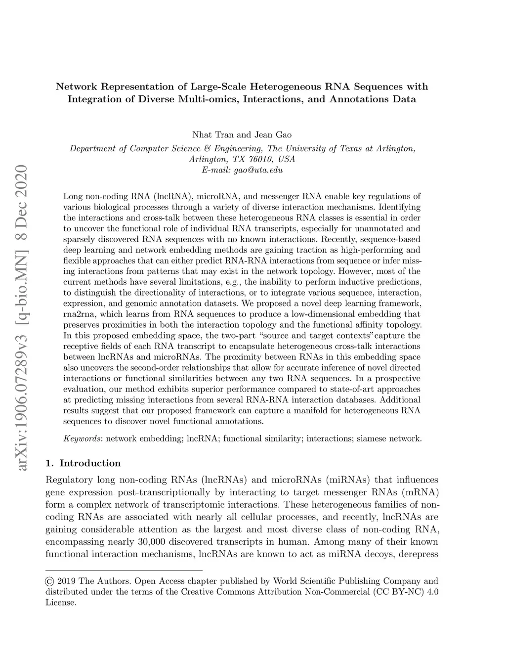 Network Representation of Large-Scale Heterogeneous RNA Sequences with