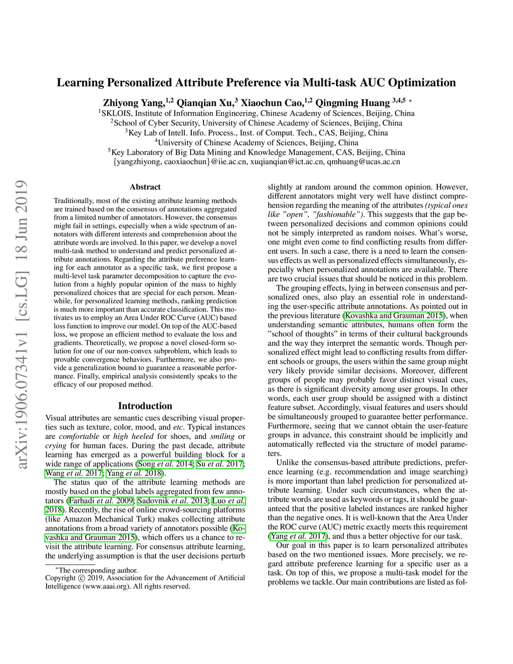 Learning Personalized Attribute Preference via Multi-task AUC