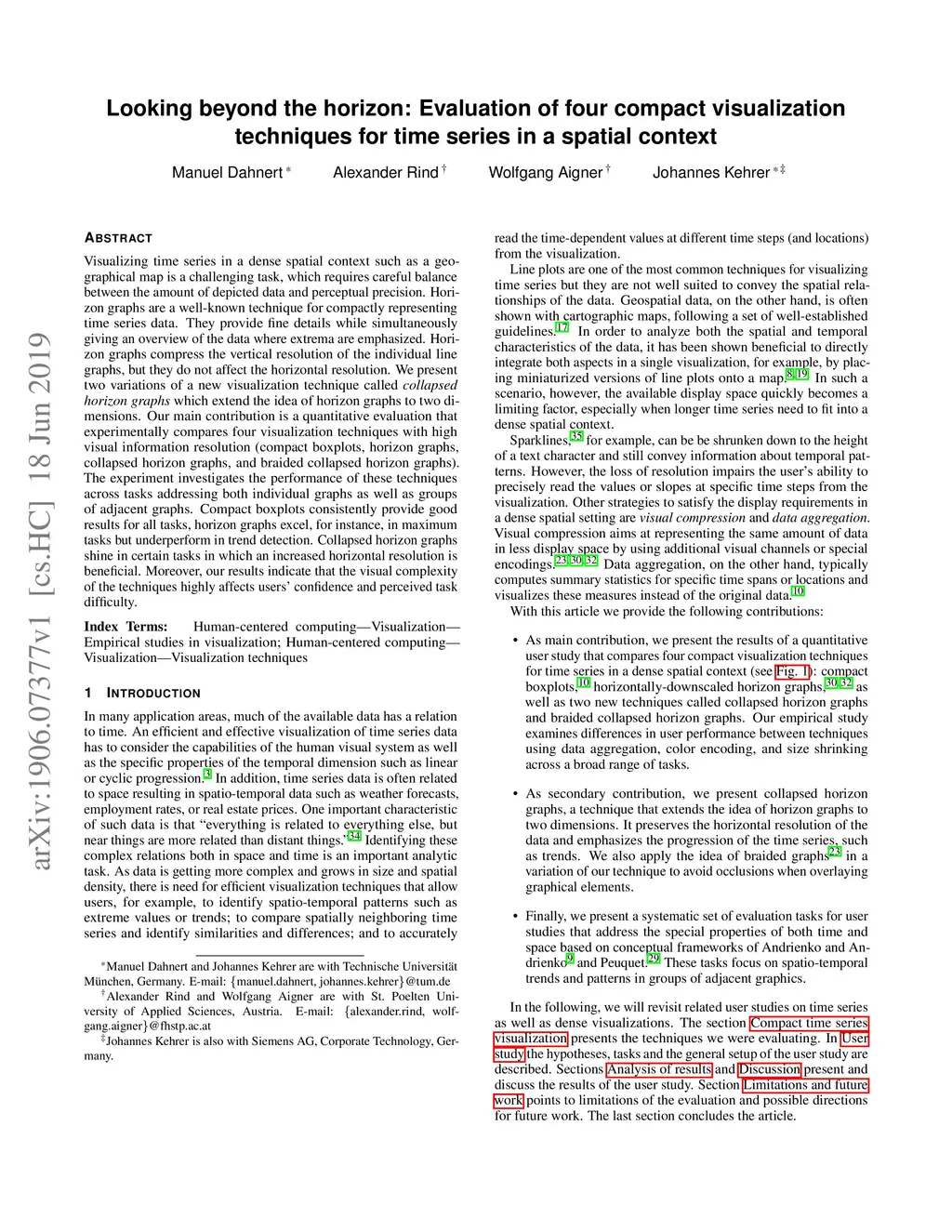 Visualizing time series in a dense spatial context such as a geographical map is a challenging task, which requires careful balance between the amount of depicted data and perceptual precision. Horizon graphs are a well-known technique for compactly representing time series data. They provide fine details while simultaneously giving an overview of the data where extrema are emphasized. Horizon graphs compress the vertical resolution of the individual line graphs, but they do not affect the horizontal resolution. We present two variations of a new visualization technique called collapsed horizon graphs which extend the idea of horizon graphs to two dimensions. Our main contribution is a quantitative evaluation that experimentally compares four visualization techniques with high visual information resolution (compact boxplots, horizon graphs, collapsed horizon graphs, and braided collapsed horizon graphs). The experiment investigates the performance of these techniques across tasks addressing both individual graphs as well as groups of adjacent graphs. Compact boxplots consistently provide good results for all tasks, horizon graphs excel, for instance, in maximum tasks but underperform in trend detection. Collapsed horizon graphs shine in certain tasks in which an increased horizontal resolution is beneficial. Moreover, our results indicate that the visual complexity of the techniques highly affects users' confidence and perceived task difficulty.