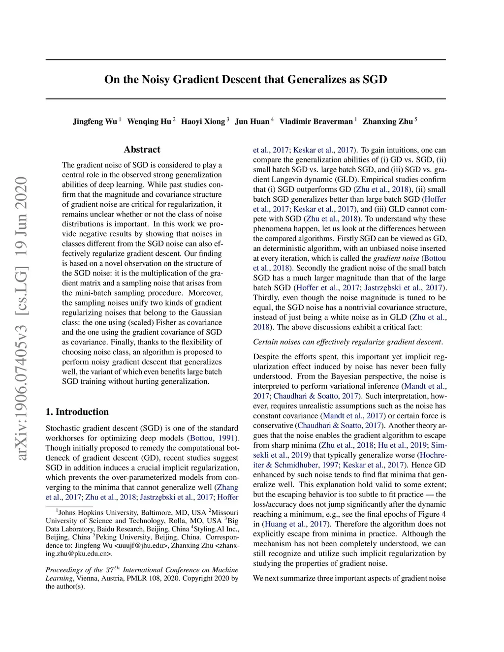 The gradient noise of SGD is considered to play a central role in the observed strong generalization abilities of deep learning. While past studies confirm that the magnitude and the covariance structure of gradient noise are critical for regularization, it remains unclear whether or not the class of noise distributions is important. In this work we provide negative results by showing that noises in classes different from the SGD noise can also effectively regularize gradient descent. Our finding is based on a novel observation on the structure of the SGD noise: it is the multiplication of the gradient matrix and a sampling noise that arises from the mini-batch sampling procedure. Moreover, the sampling noises unify two kinds of gradient regularizing noises that belong to the Gaussian class: the one using (scaled) Fisher as covariance and the one using the gradient covariance of SGD as covariance. Finally, thanks to the flexibility of choosing noise class, an algorithm is proposed to perform noisy gradient descent that generalizes well, the variant of which even benefits large batch SGD training without hurting generalization.