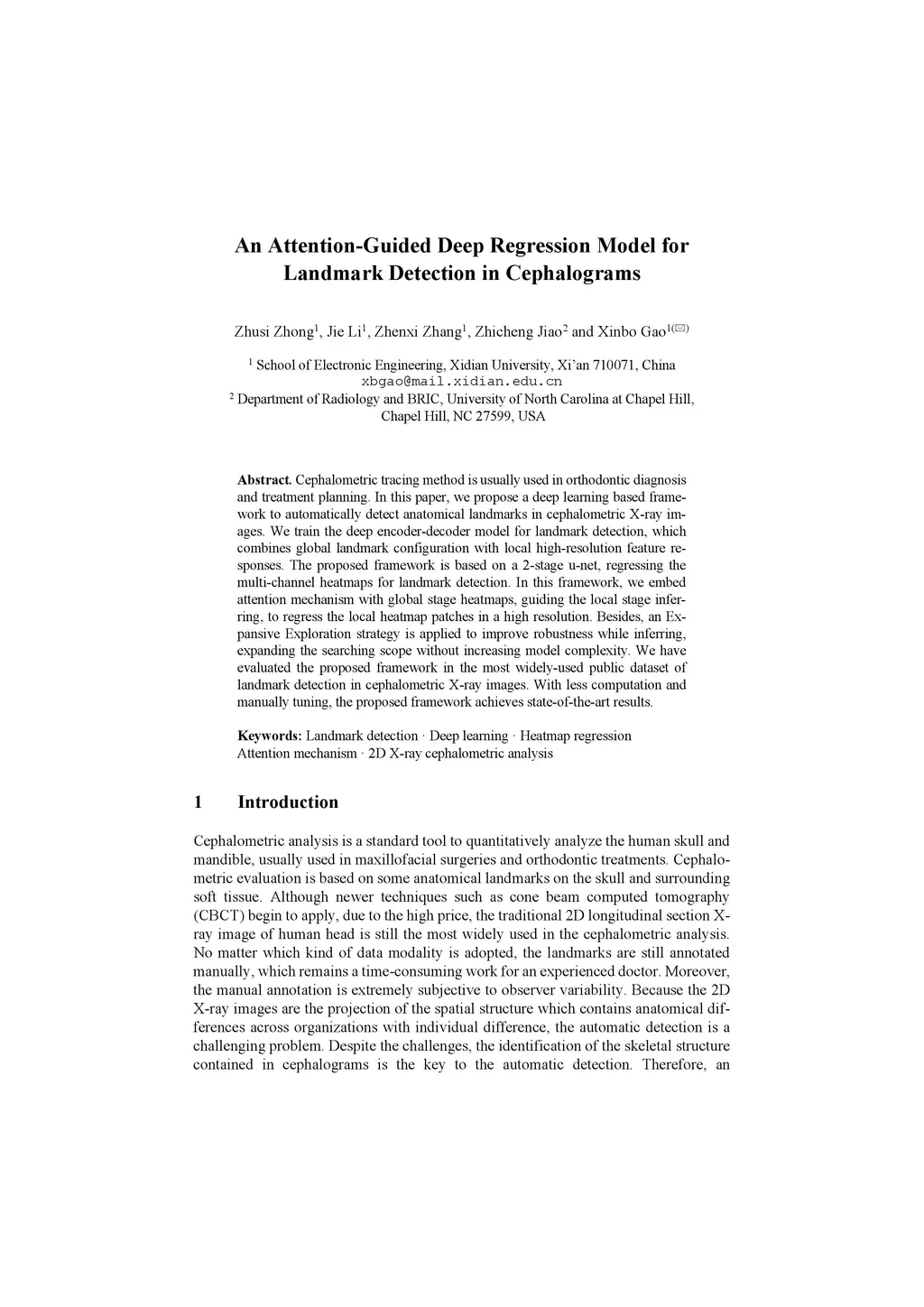 An Attention-Guided Deep Regression Model for Landmark Detection in