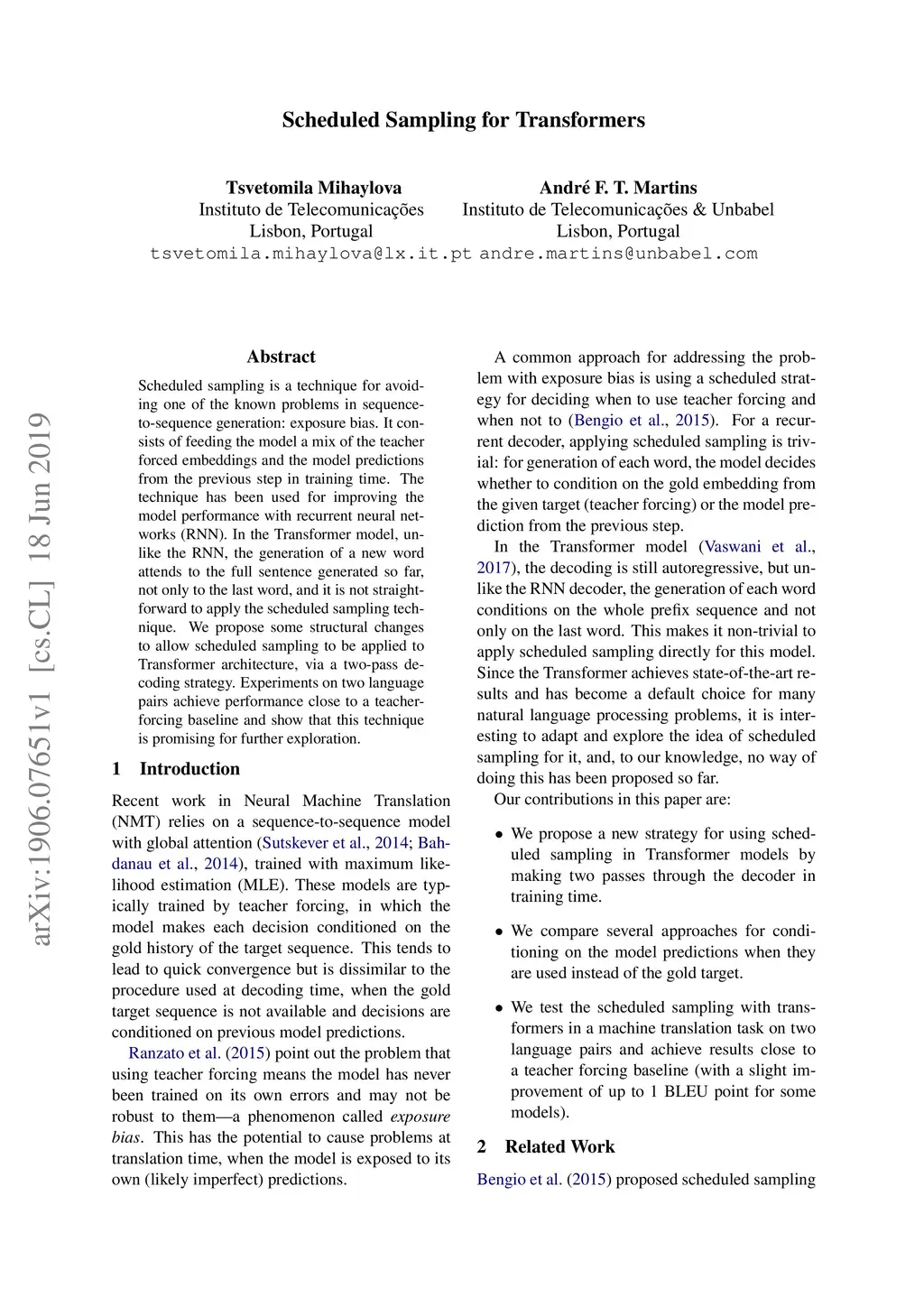 Scheduled Sampling for Transformers