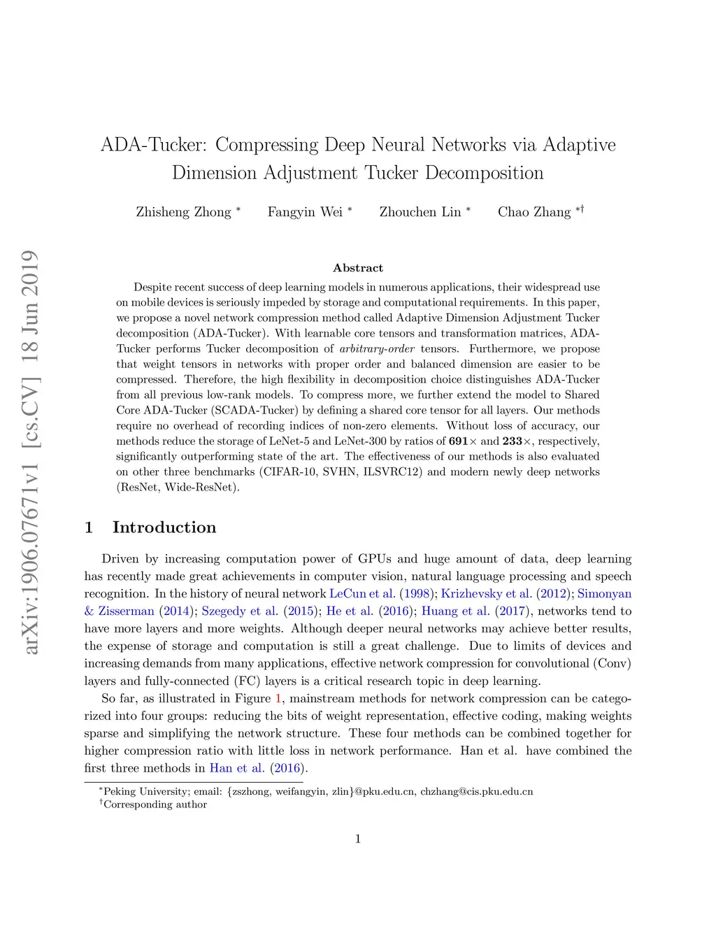 ADA-Tucker: Compressing Deep Neural Networks via Adaptive Dimension