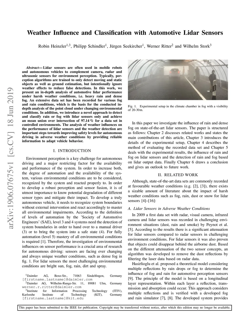 Weather Influence and Classification with Automotive Lidar Sensors