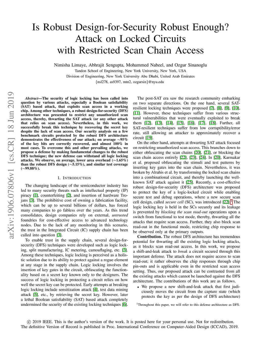 The security of logic locking has been called into question by various attacks, especially a Boolean satisfiability (SAT) based attack, that exploits scan access in a working chip. Among other techniques, a robust design-for-security (DFS) architecture was presented to restrict any unauthorized scan access, thereby, thwarting the SAT attack (or any other attack that relies on scan access). Nevertheless, in this work, we successfully break this technique by recovering the secret key despite the lack of scan access. Our security analysis on a few benchmark circuits protected by the robust DFS architecture demonstrates the effectiveness of our attack; on average ~95% of the key bits are correctly recovered, and almost 100% in most cases. To overcome this and other prevailing attacks, we propose a defense by making fundamental changes to the robust DFS technique; the new defense can withstand all logic locking attacks. We observe, on average, lower area overhead (~1.65%) than the robust DFS design (~5.15%), and similar test coverage (~99.88%).