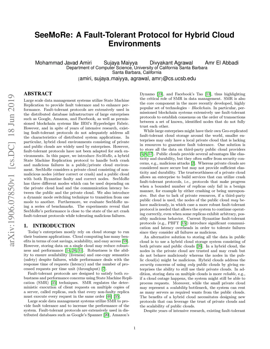 SeeMoRe: A Fault-Tolerant Protocol for Hybrid Cloud Environments