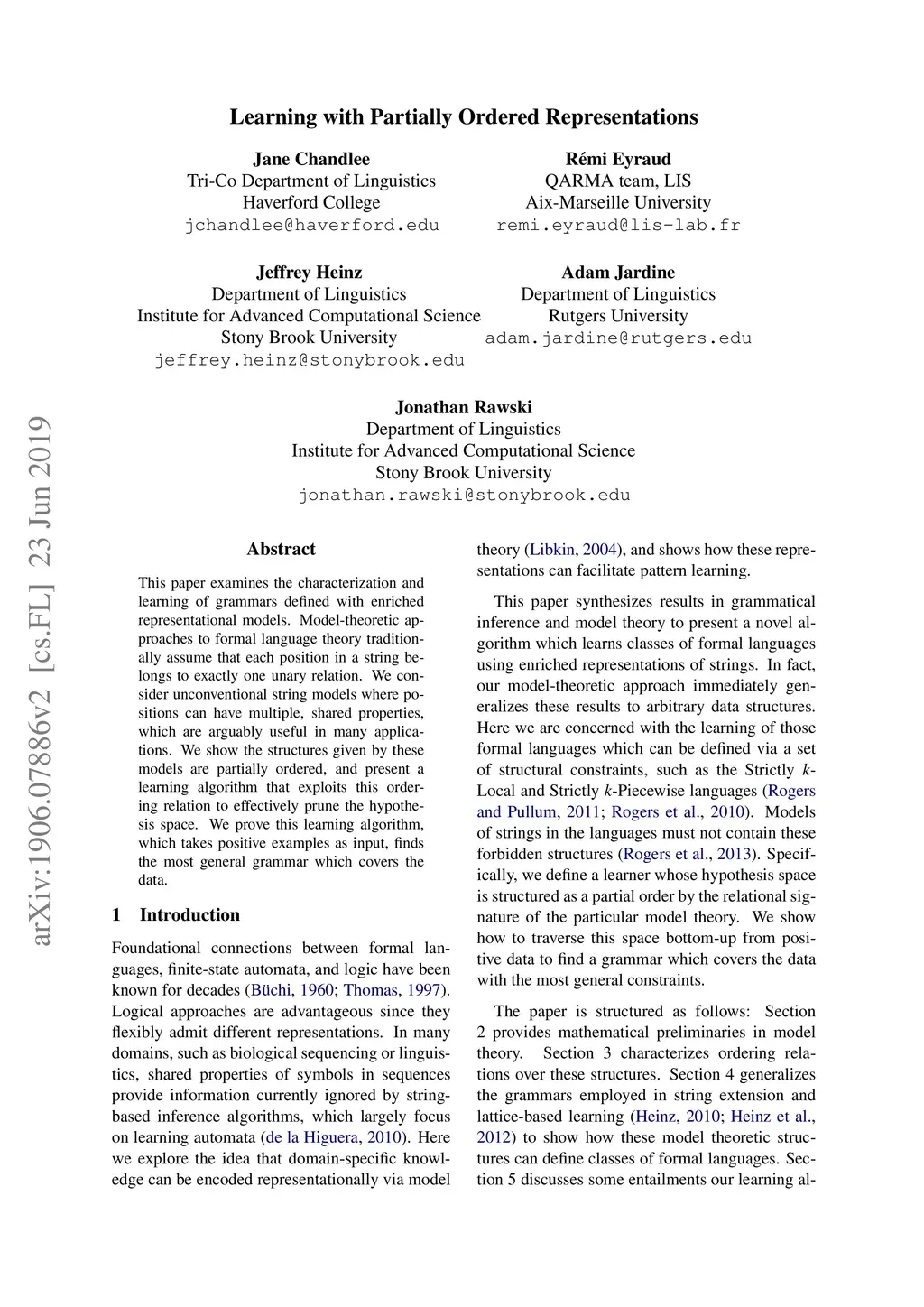 This paper examines the characterization and learning of grammars defined with enriched representational models. Model-theoretic approaches to formal language theory traditionally assume that each position in a string belongs to exactly one unary relation. We consider unconventional string models where positions can have multiple, shared properties, which are arguably useful in many applications. We show the structures given by these models are partially ordered, and present a learning algorithm that exploits this ordering relation to effectively prune the hypothesis space. We prove this learning algorithm, which takes positive examples as input, finds the most general grammar which covers the data.