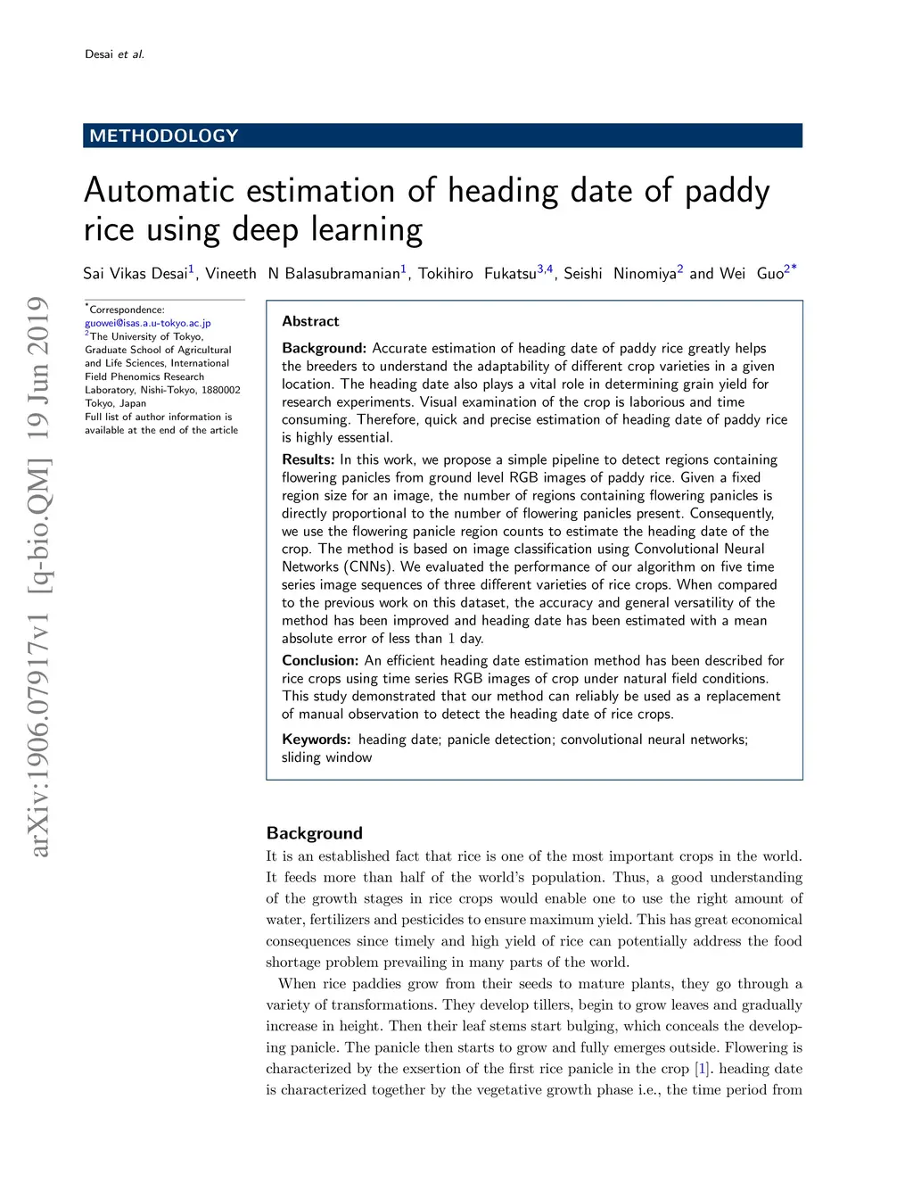 Accurate estimation of heading date of paddy rice greatly helps the breeders to understand the adaptability of different crop varieties in a given location. The heading date also plays a vital role in determining grain yield for research experiments. Visual examination of the crop is laborious and time consuming. Therefore, quick and precise estimation of heading date of paddy rice is highly essential. In this work, we propose a simple pipeline to detect regions containing flowering panicles from ground level RGB images of paddy rice. Given a fixed region size for an image, the number of regions containing flowering panicles is directly proportional to the number of flowering panicles present. Consequently, we use the flowering panicle region counts to estimate the heading date of the crop. The method is based on image classification using Convolutional Neural Networks (CNNs). We evaluated the performance of our algorithm on five time series image sequences of three different varieties of rice crops. When compared to the previous work on this dataset, the accuracy and general versatility of the method has been improved and heading date has been estimated with a mean absolute error of less than 1 day.