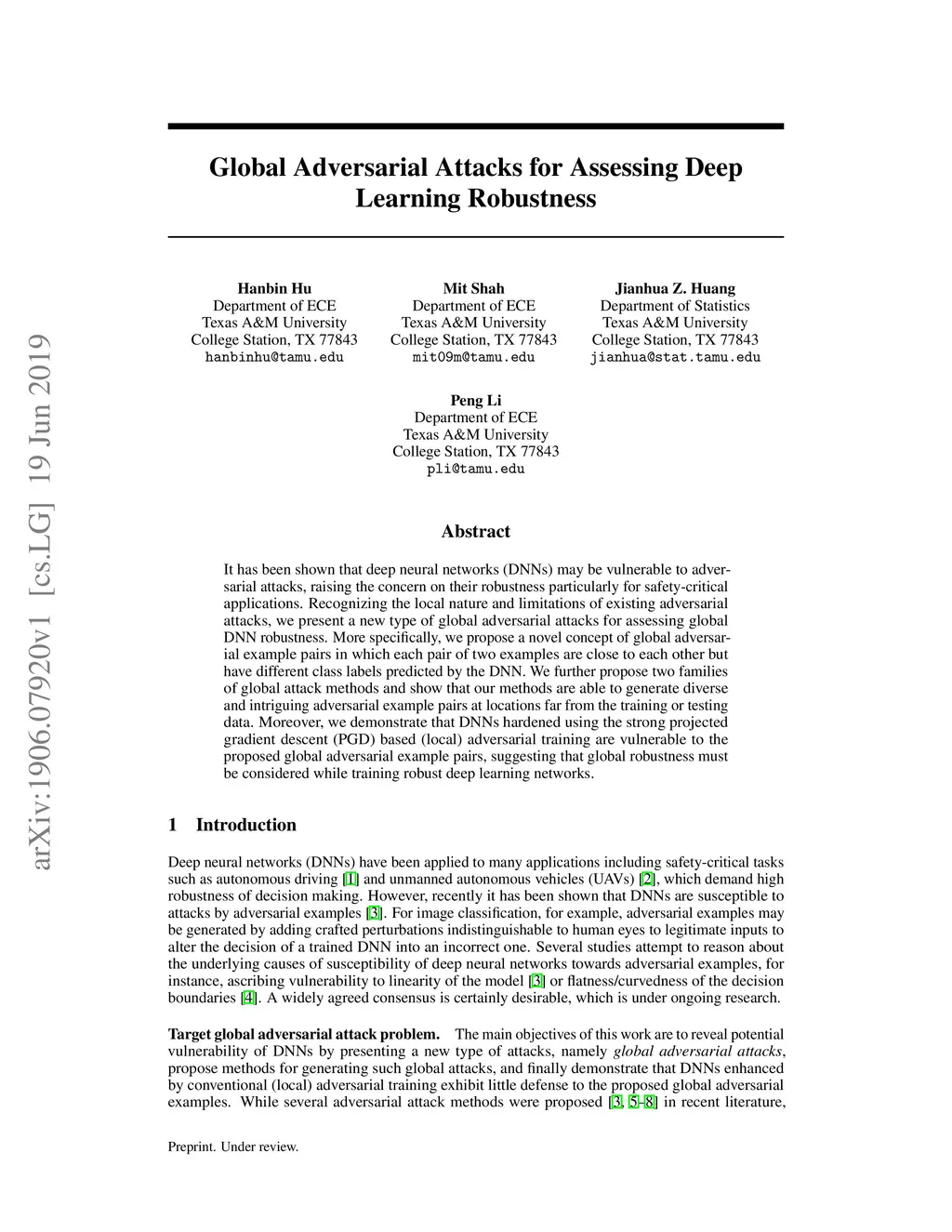 Global Adversarial Attacks for Assessing Deep Learning Robustness