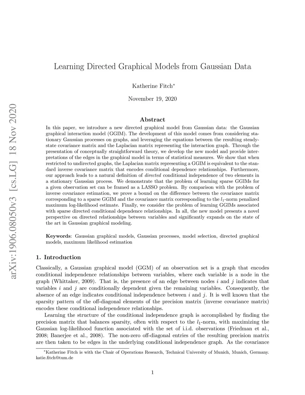 In this paper, we introduce a new directed graphical model from Gaussian data: the Gaussian graphical interaction model (GGIM). The development of this model comes from considering stationary Gaussian processes on graphs, and leveraging the equations between the resulting steady-state covariance matrix and the Laplacian matrix representing the interaction graph. Through the presentation of conceptually straightforward theory, we develop the new model and provide interpretations of the edges in the graphical model in terms of statistical measures. We show that when restricted to undirected graphs, the Laplacian matrix representing a GGIM is equivalent to the standard inverse covariance matrix that encodes conditional dependence relationships. Furthermore, our approach leads to a natural definition of directed conditional independence of two elements in a stationary Gaussian process. We demonstrate that the problem of learning sparse GGIMs for a given observation set can be framed as a LASSO problem. By comparison with the problem of inverse covariance estimation, we prove a bound on the difference between the covariance matrix corresponding to a sparse GGIM and the covariance matrix corresponding to the -norm penalized maximum log-likelihood estimate. Finally, we consider the problem of learning GGIMs associated with sparse directed conditional dependence relationships. In all, the new model presents a novel perspective on directed relationships between variables and significantly expands on the state of the art in Gaussian graphical modeling.