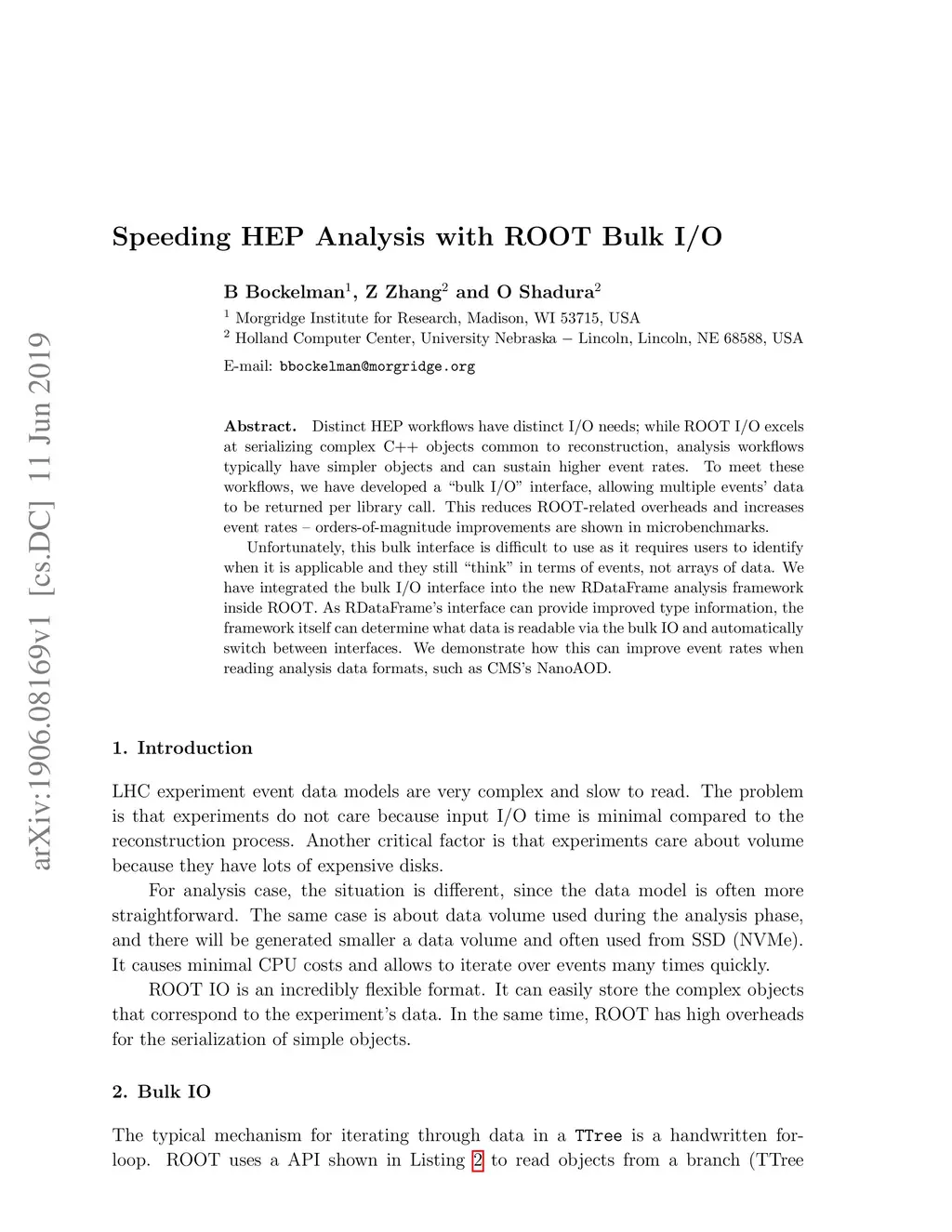Distinct HEP workflows have distinct I/O needs; while ROOT I/O excels at serializing complex C++ objects common to reconstruction, analysis workflows typically have simpler objects and can sustain higher event rates. To meet these workflows, we have developed a "bulk I/O" interface, allowing multiple events data to be returned per library call. This reduces ROOT-related overheads and increases event rates - orders-of-magnitude improvements are shown in microbenchmarks. Unfortunately, this bulk interface is difficult to use as it requires users to identify when it is applicable and they still "think" in terms of events, not arrays of data. We have integrated the bulk I/O interface into the new RDataFrame analysis framework inside ROOT. As RDataFrame's interface can provide improved type information, the framework itself can determine what data is readable via the bulk IO and automatically switch between interfaces. We demonstrate how this can improve event rates when reading analysis data formats, such as CMS's NanoAOD.