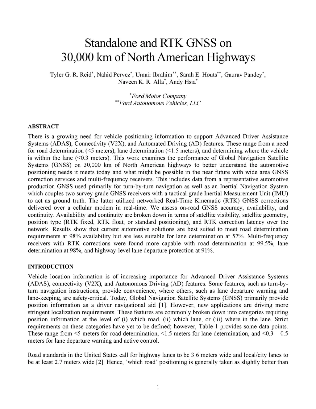 Standalone and RTK GNSS on 30,000 km of North American Highways