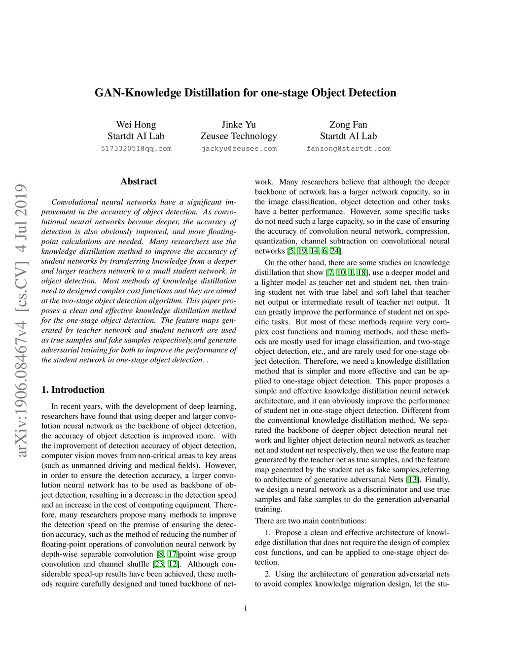 GAN-Knowledge Distillation for one-stage Object Detection