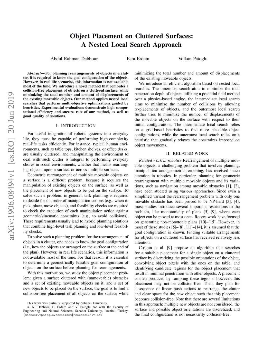 Object Placement on Cluttered Surfaces: A Nested Local Search Approach