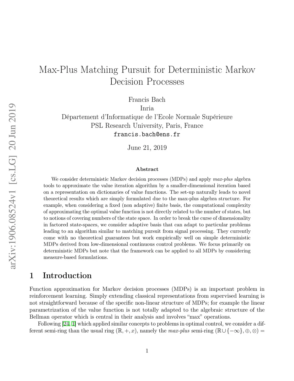 Max-Plus Matching Pursuit for Deterministic Markov Decision Processes