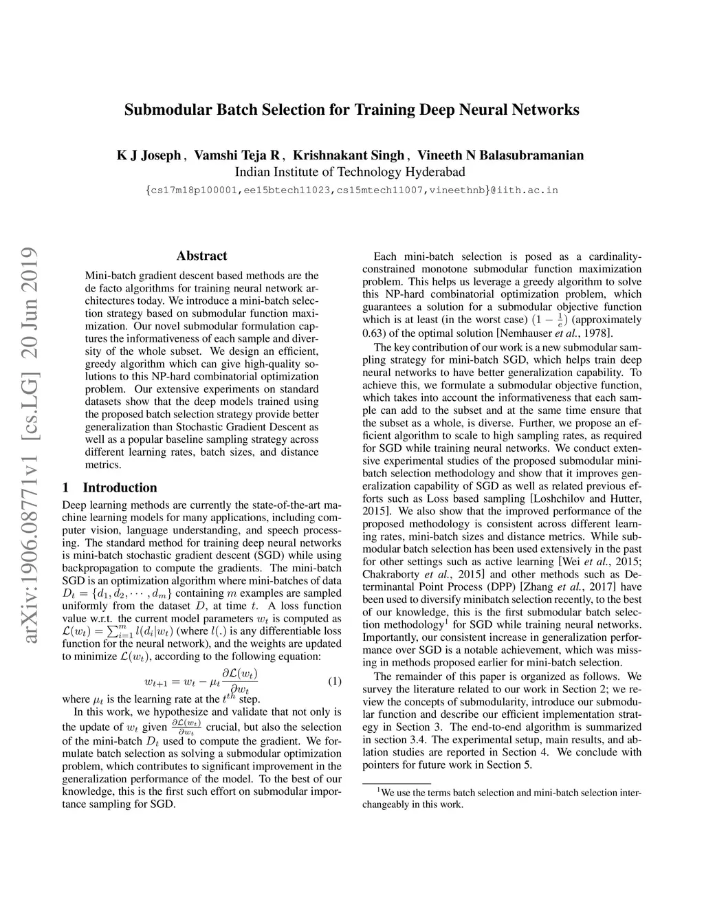 Submodular Batch Selection for Training Deep Neural Networks