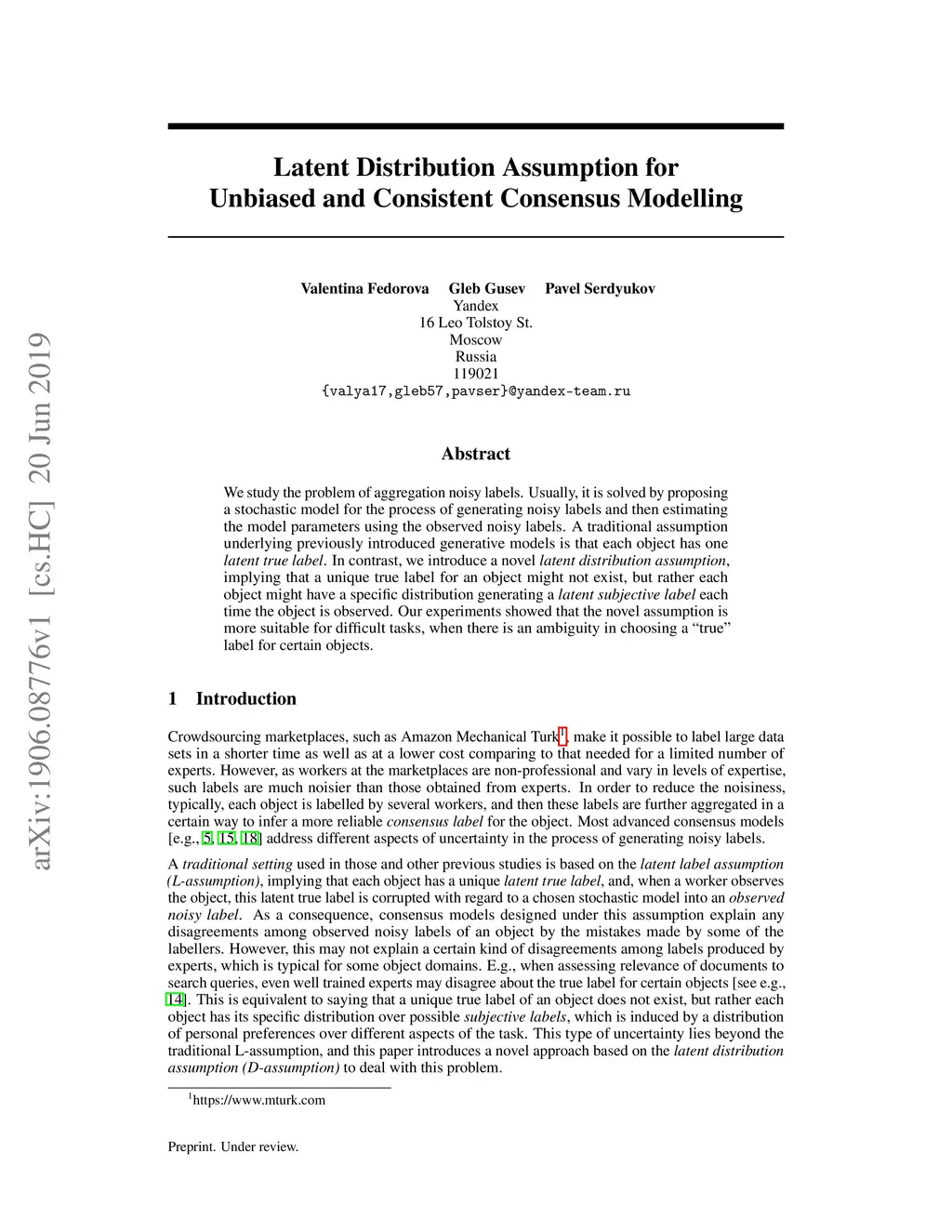 Latent Distribution Assumption for Unbiased and Consistent Consensus